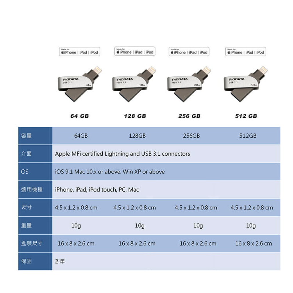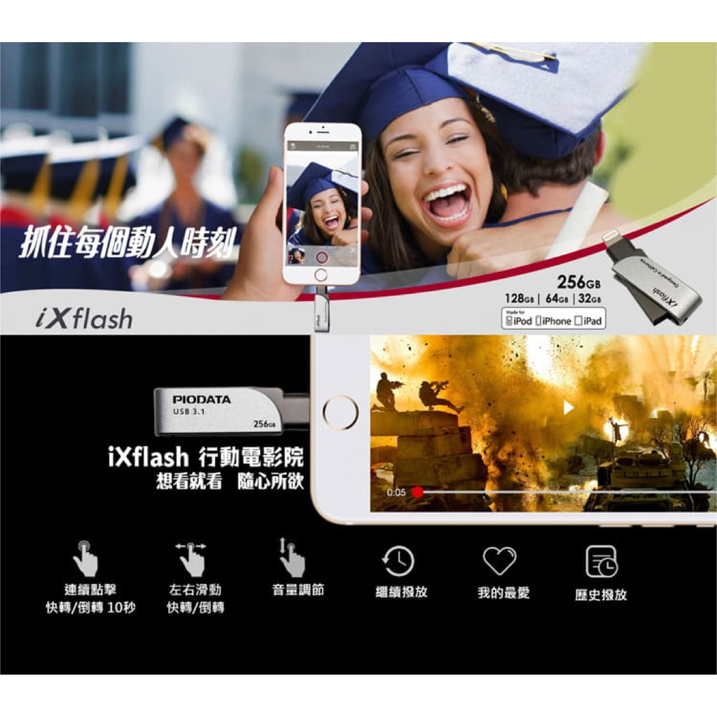 【PIODATA】【現貨當日出】 iXflash Lightning USB3.1 蘋果隨身碟 雙用隨身碟 128GB128G|256G|64GFlash Drives & OTGiPanic 品牌專賣