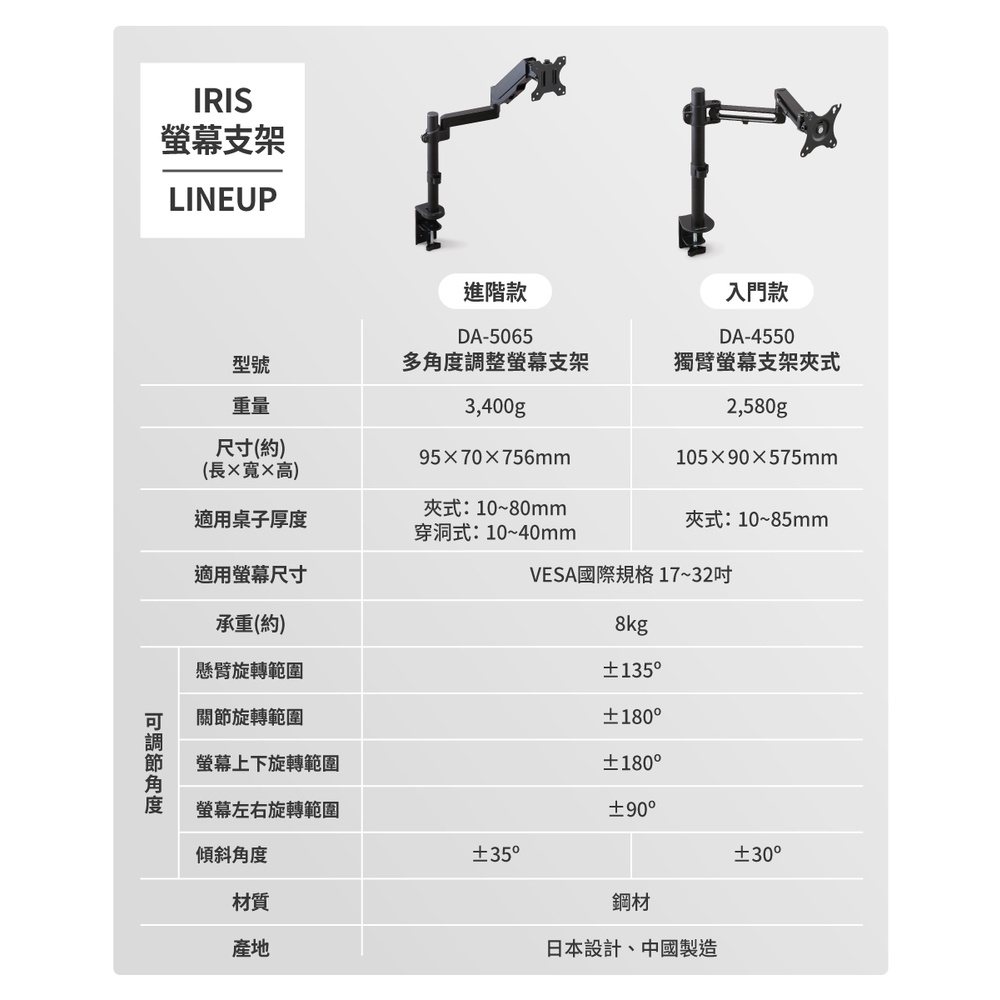 IRIS OHYAMA 多角度調整螢幕支架 DA-5065 (旋轉調整/夾式/穿洞式/螢幕夾/居家辦公/減輕頸椎負擔)DA-5065OthersIRIS OHYAMA 台灣愛麗思歐雅瑪