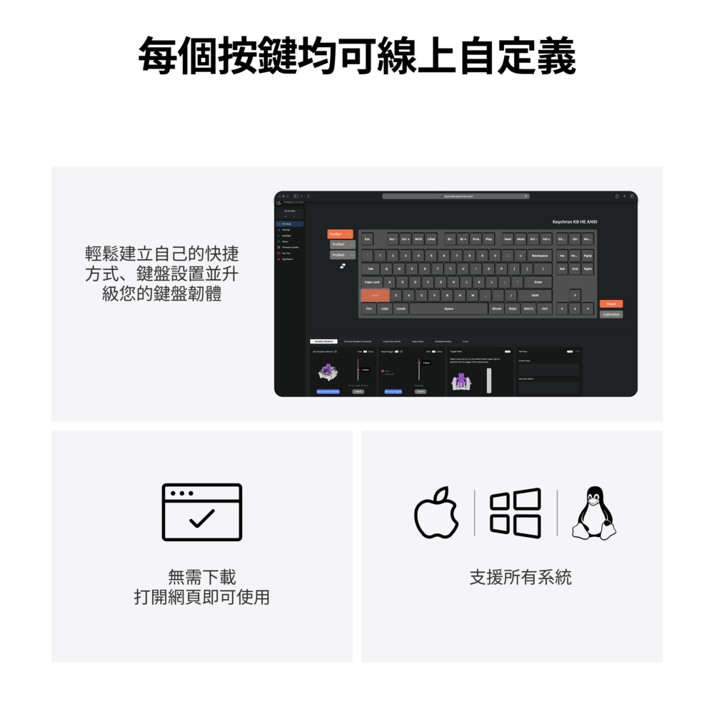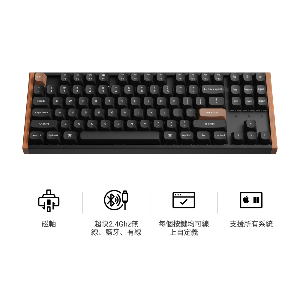 Keychron K8 HE 80% TKL 無線磁軸鍵盤 三模連線 網頁驅動 RT觸發 Mac/Win適用特仕版(木頭裝飾),黑色|特仕版(木頭裝飾),白色|標準版(鋁框鍵帽透光),黑色|標準版(鋁框鍵帽透光),白色KeyboardsKeychron臺灣官方旗艦店
