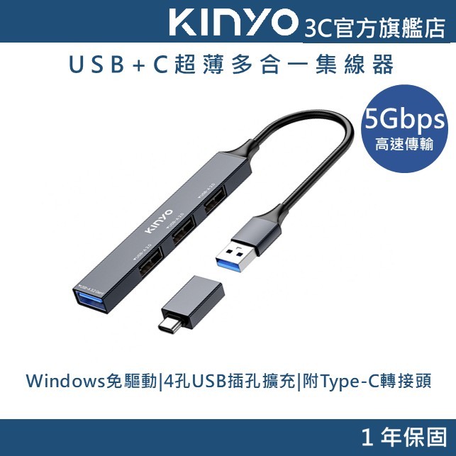 【KINYO官方直營】USB+C超薄多合一集線器 (HUB)HUB35 多合一集線器USB Hubs & Card ReadersKINYO官方旗艦店_3C館