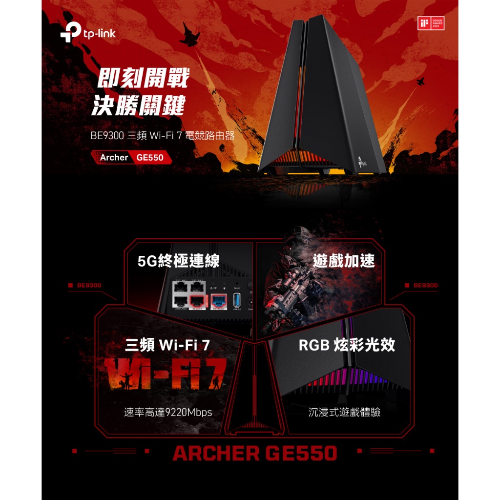 TP-LINK Archer GE550 BE9300三頻 Wi-Fi 7 電競路由器TP-LINK Archer GE550 BE9300三頻 Wi-Fi 7 電競路由器Modems & Wireless RoutersJT3C 電競旗艦館