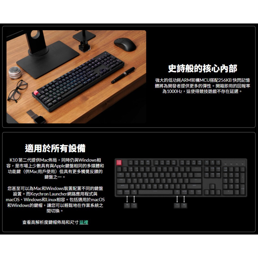 Keychron K10 第二代 全尺寸 無線機械鍵盤 網頁QMK 適用Mac/Win 透光鍵帽 英文版本 送注音轉印貼白背光/非熱插拔,紅軸(線性)|白背光/非熱插拔,茶軸(段落)|白背光/非熱插拔,香蕉軸(提前大段落)KeyboardsKeychron臺灣官方旗艦店