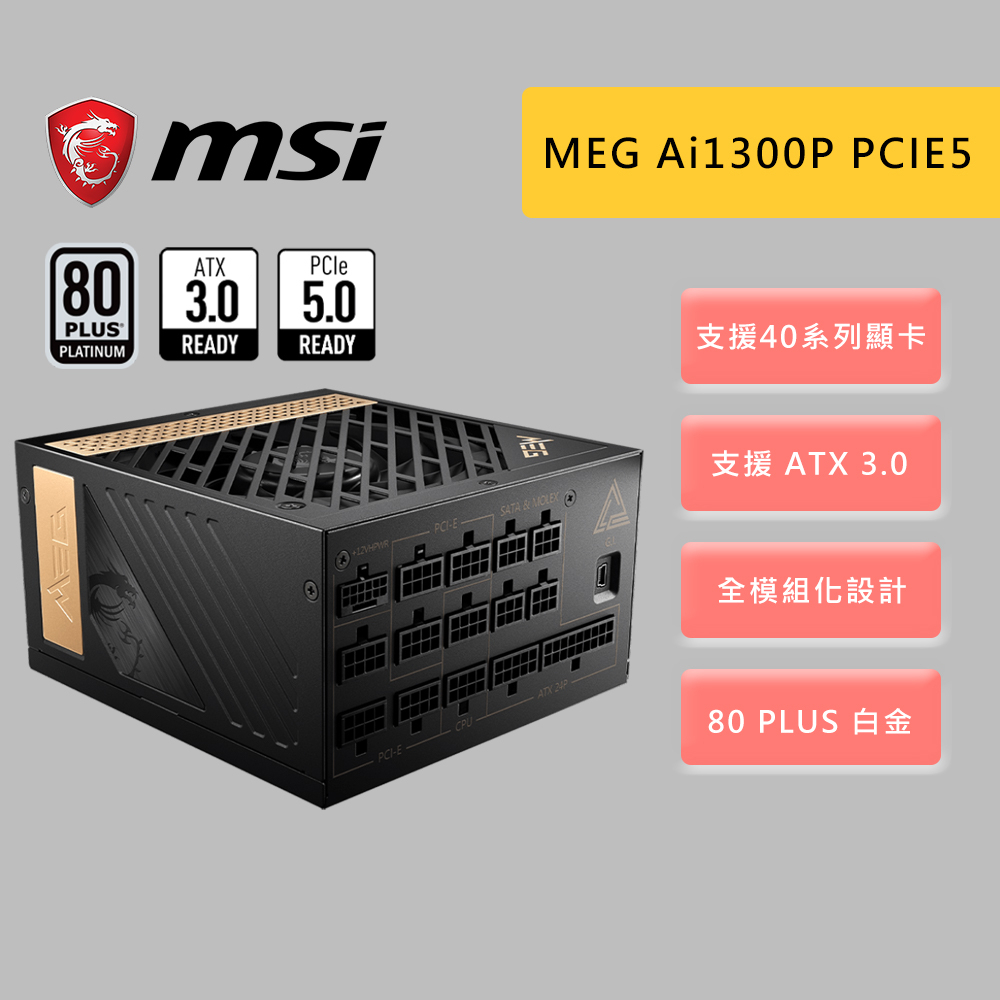 MSI 微星 MEG Ai1300P PCIE5 1300W 80 PLUS 白金 全模組 電源供應器 ATX3.0MSI 微星 MEG Ai1300P PCIE5 1300W 80 PLUS 白金 全模組 電源供應器 ATX3.0Power Supply UnitsJT3C 電競旗艦館