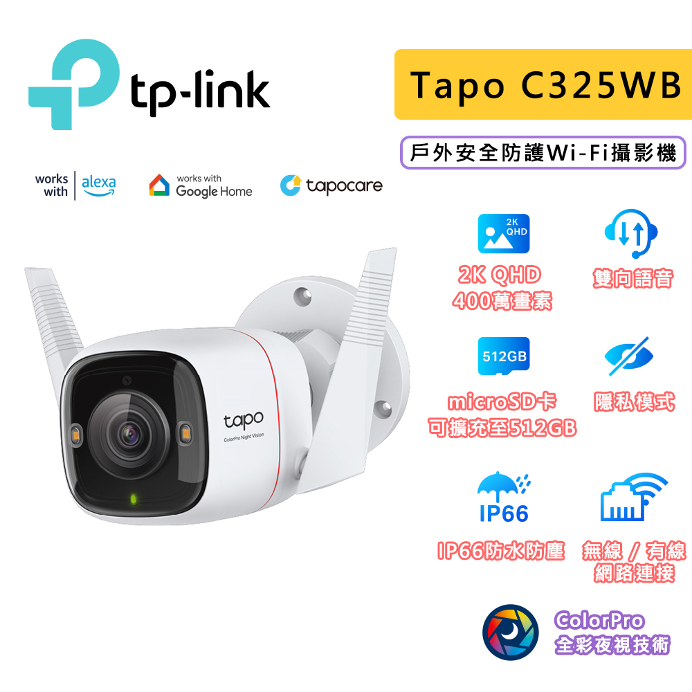 TP-Link Tapo C325WB 400萬畫素 2K QHD AI智慧偵測 ColorPro夜間顯示器 監控攝影機Tapo C325WB,加購 512G 金士頓記憶卡|Tapo C325WB,不加購記憶卡(單主機)|Tapo C325WB,加購 128G 金士頓記憶卡|Tapo C325WB,加購 256G 金士頓記憶卡Modems & Wireless RoutersJT3C 電競旗艦館