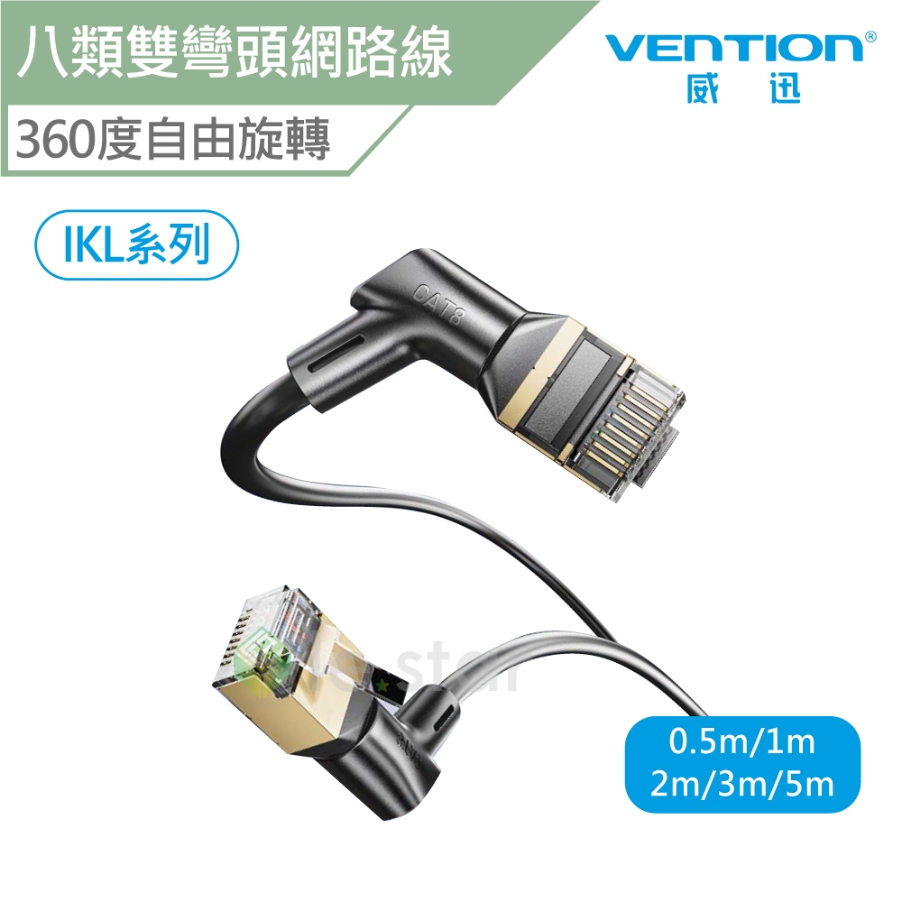 VENTION 威迅 IKL 系列 CAT8 八類 雙彎頭 可旋轉 纖細 高速 網路線 公司貨 RJ45 彎頭網路線0.5M|1M|2M|3M|5MNetwork Cables & Connectorslestar簡單生活
