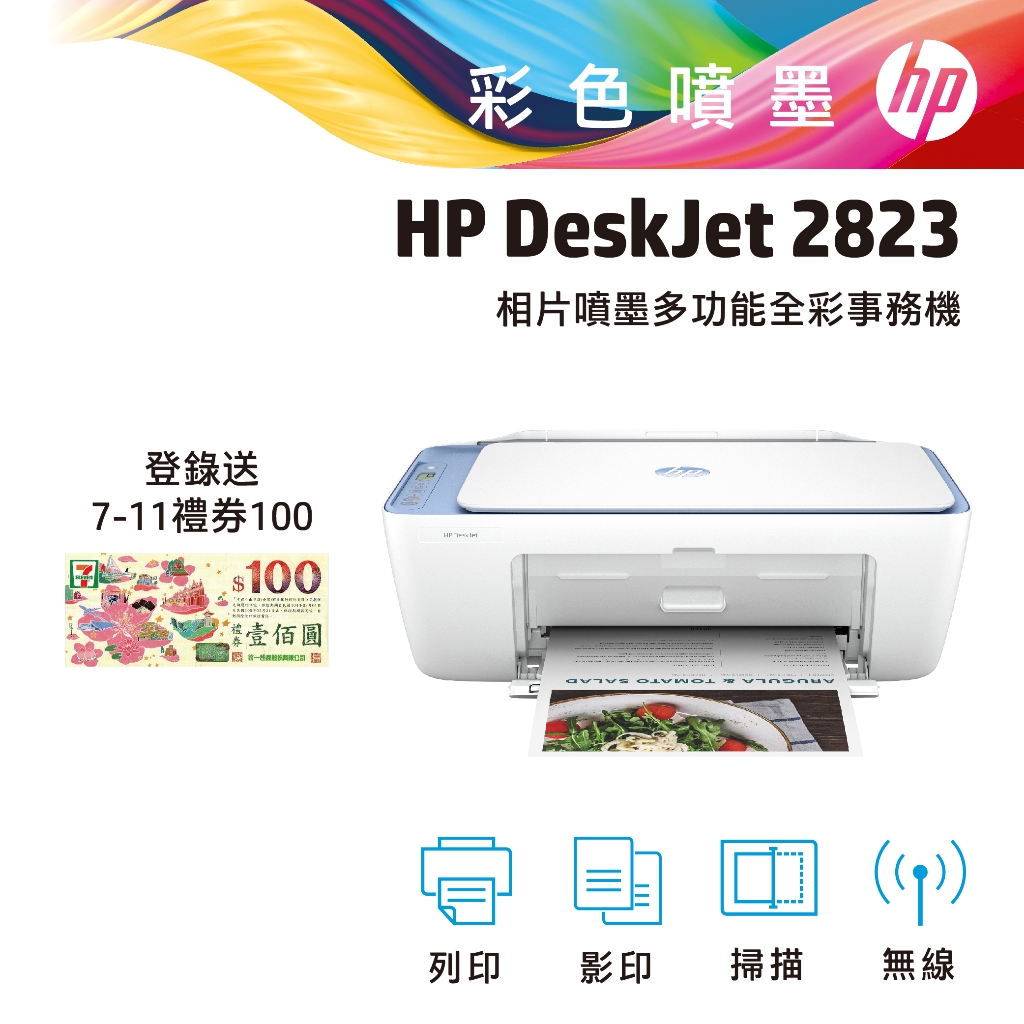 HP Deskjet 2823 無線 噴墨多功能事務機 相片 印表機(含墨水 傳輸線需另購)注意事項請參閱內文福利品(上蓋脫漆)|單機(含基本墨水)|單機(含基本墨水)+傳輸線|單機(含基本墨水)+一組一般容量墨水|單機+一開六插 6呎延長線|單機+防水亮面相紙10張(185磅)Printers, Scanners & Photocopy MachinesHP惠普品牌旗艦店