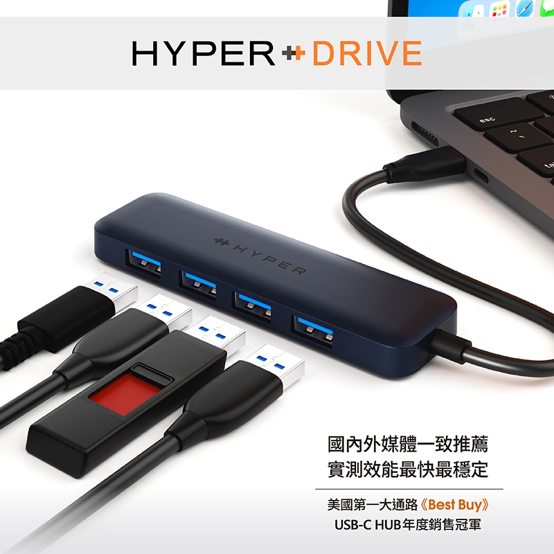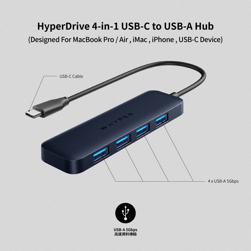 【HyperDrive】4-in-1 USB-C to USB-A Hub-午夜色【HyperDrive】4-in-1 USB-C to USB-A Hub-午夜色Network Cables & ConnectorsHyperDrive 台灣官方旗艦店