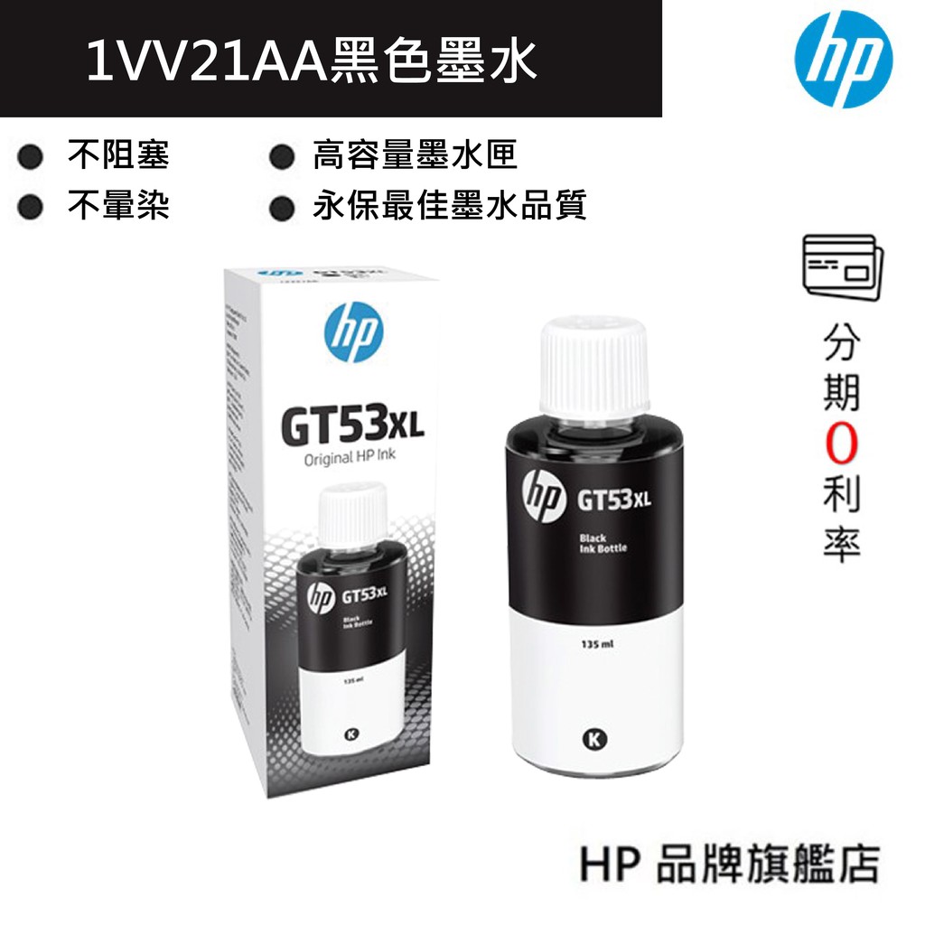 HP 惠普 GT53 XL 135毫升黑色原廠墨水瓶(1VV21AA)