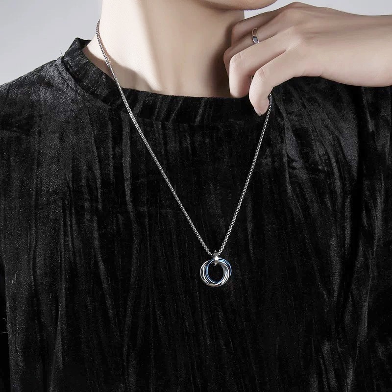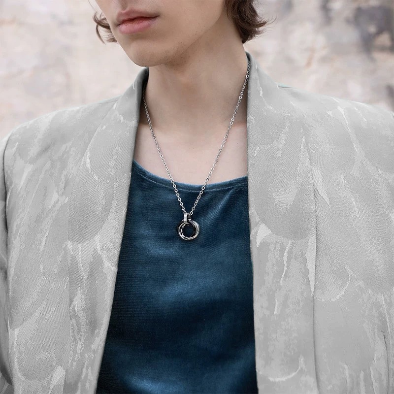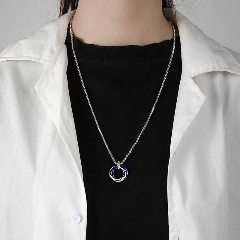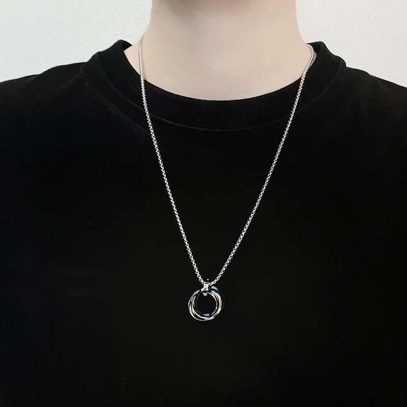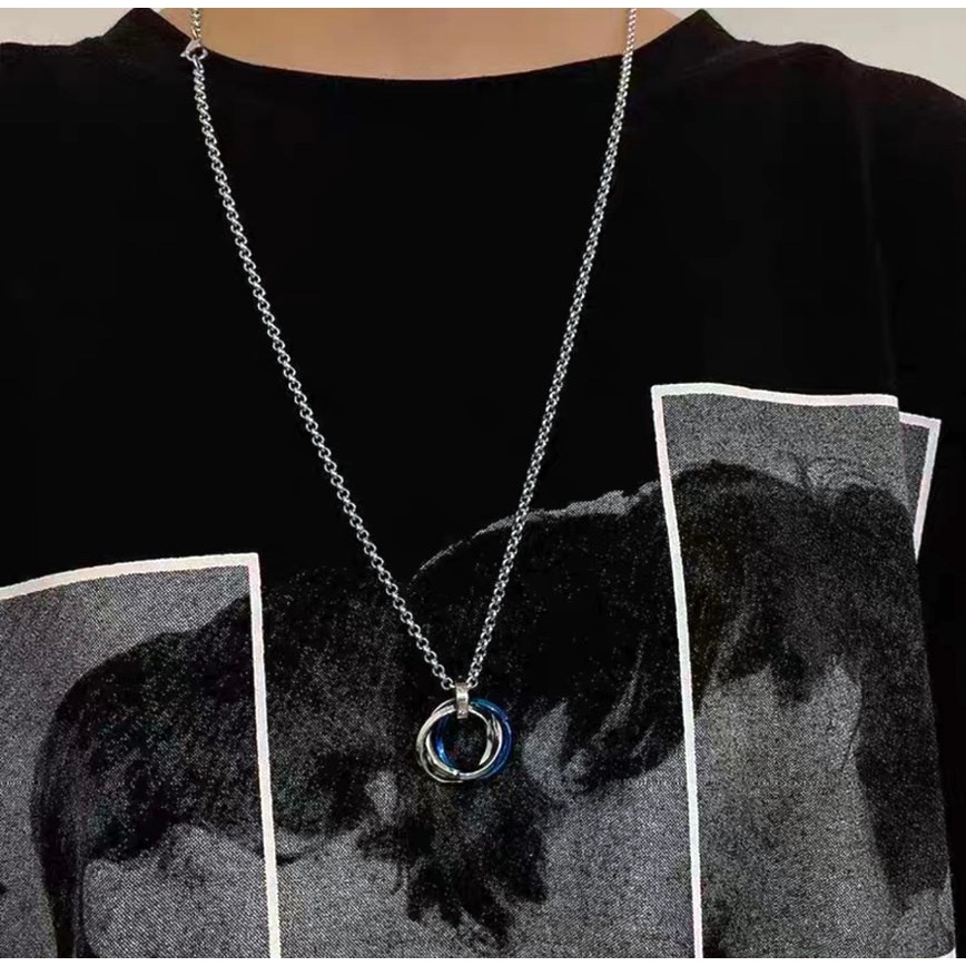 【K-2】高級感 彩環項鍊 吊墜項鍊 男生配飾 INS 復古風 穿搭 戒指項鍊 項鍊 戒指 禮物飾品 情侶【KM167】