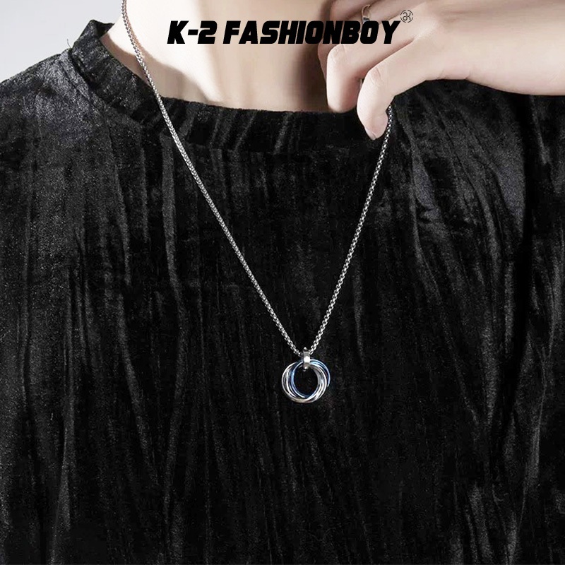 【K-2】高級感 彩環項鍊 吊墜項鍊 男生配飾 INS 復古風 穿搭 戒指項鍊 項鍊 戒指 禮物飾品 情侶【KM167】催燦金|典雅黑 |克萊茵蘭 K-2 Fashionboy