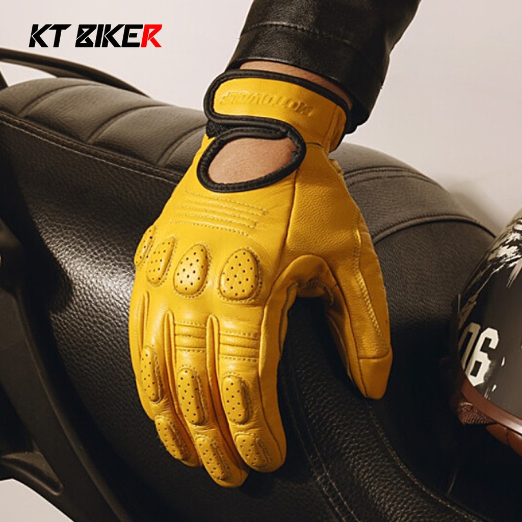 【KT BIKER】 復古 真皮手套 觸控手套 羊皮手套 騎士手套 防滑 防摔 騎士 透氣〔MWG001〕黃 XXLKT BIKER 專注車品