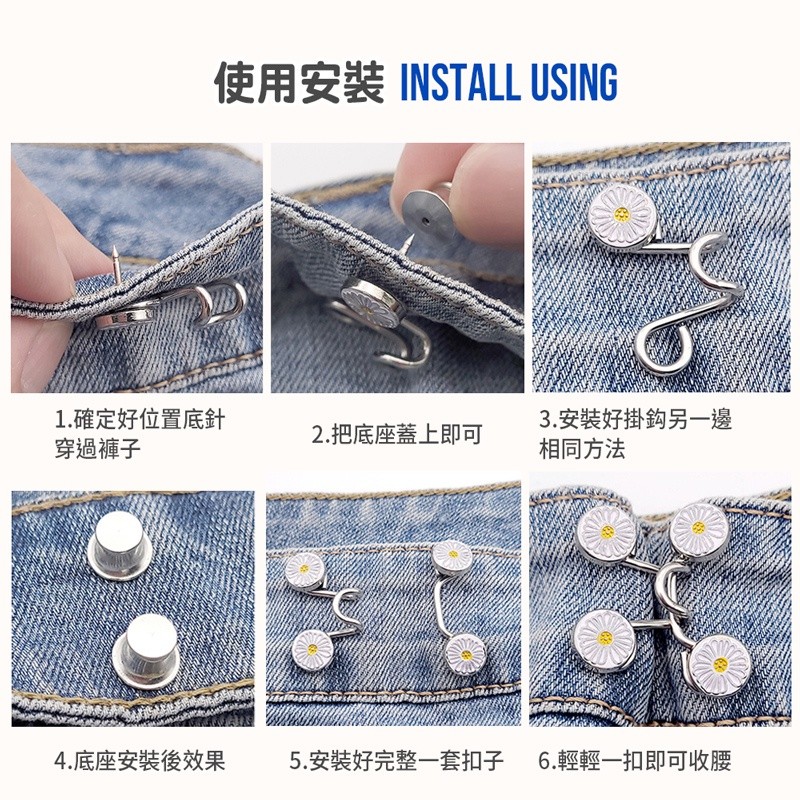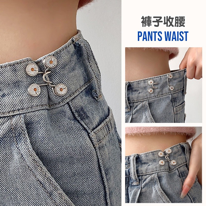 【LAVIDA嚴選】收腰別針 收腰神器 腰圍調整扣 收腰鈕扣 褲子鈕扣 調整扣 免縫扣 收腰扣 褲子太大鈕 金屬紐扣銀色 (4顆扣子+2個勾)|小雛菊 (4顆扣子+2個勾)OthersLAVIDA 育兒好好玩!