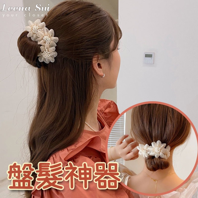 盤髮器 花朵丸子頭 編髮盤頭神器 網紅珍珠韓國頭飾髮飾 080257白色蕾絲蝴蝶結|黑色蕾絲蝴蝶結|黃色三朵花|紫色三朵花|粉色三朵花|灰色三朵花Hair Ties, Ribbons & ScrunchiesLeenaSui ~台灣賣家 隔日到貨