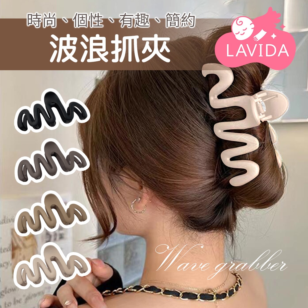 【LAVIDA嚴選】復古波浪抓夾 鯊魚夾 後腦勺髮夾 頭飾 百搭霧面髮夾 盤髮抓 造型夾黑|咖|棕|巧克力棕|奶咖Hair Clips & Hair PinsLAVIDA 育兒好好玩!