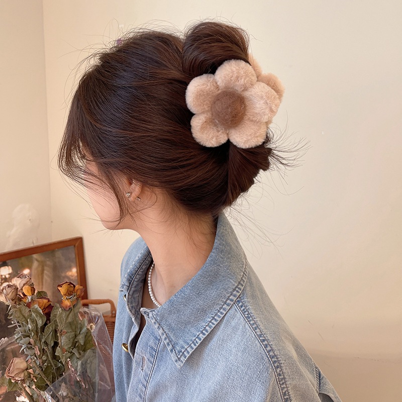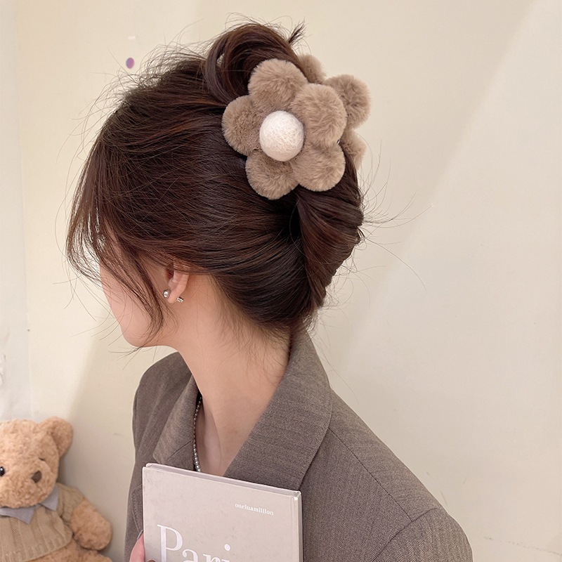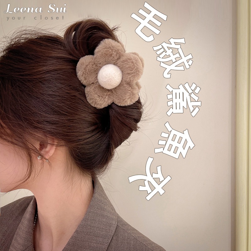 鯊魚夾 美拉德花朵毛絨髮夾後腦勺鯊魚夾 081844咖啡色|卡其色Hair Clips & Hair PinsLeenaSui ~台灣賣家 隔日到貨