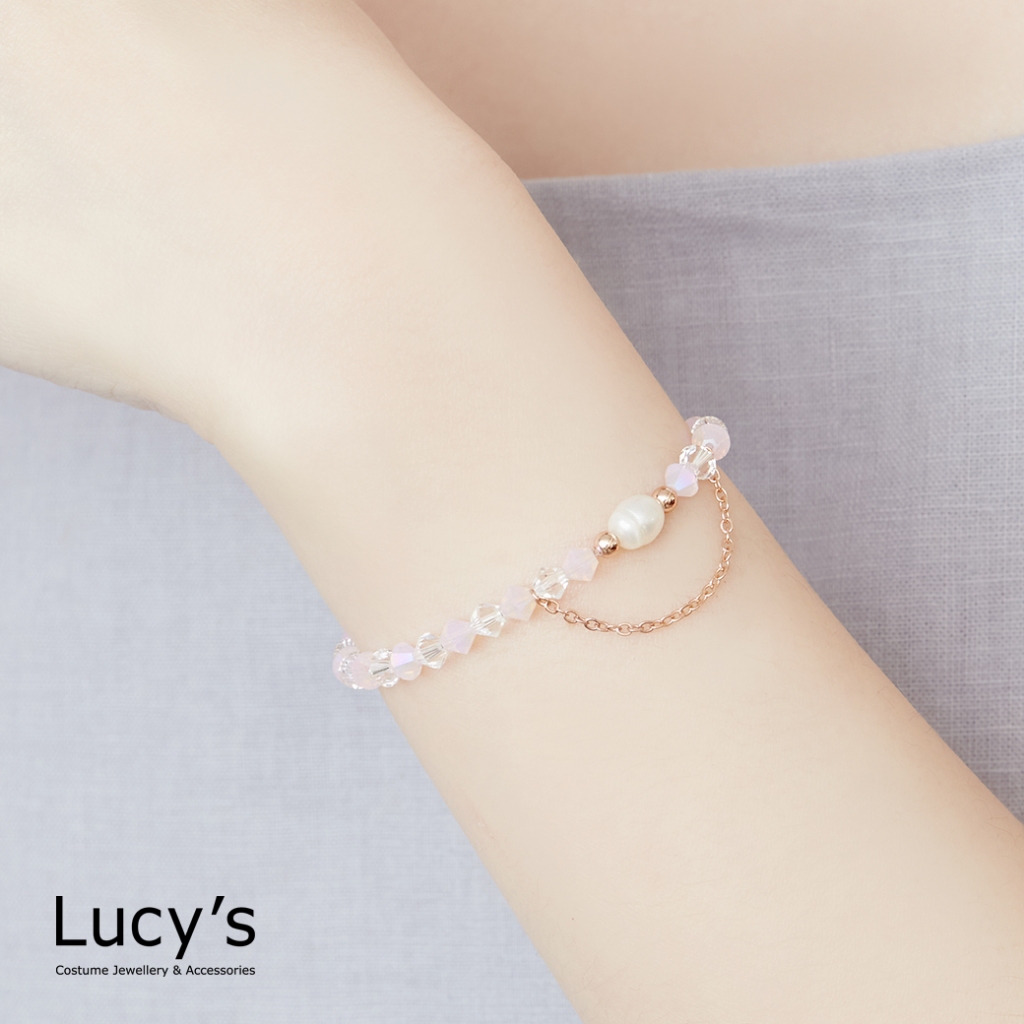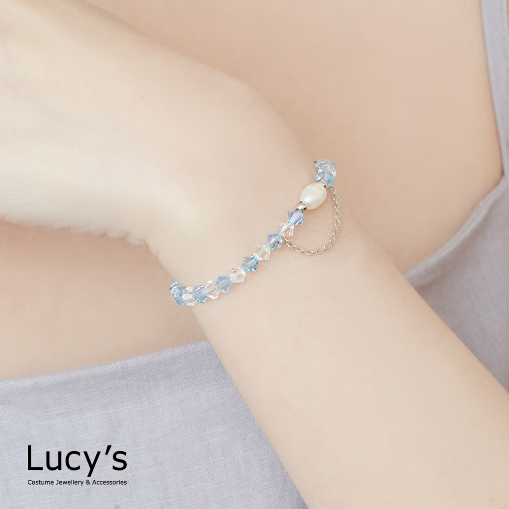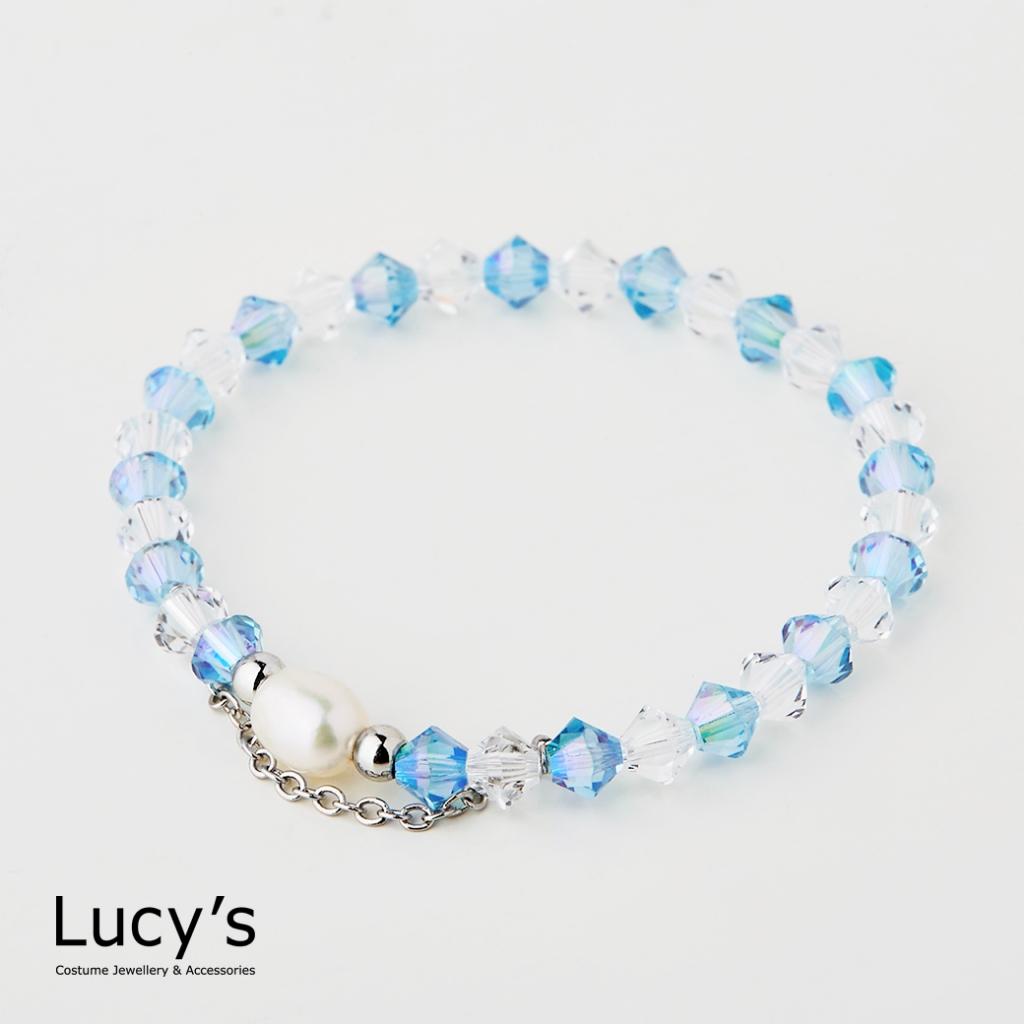 Lucy’s KIDS 兒童系列|珍珠水晶 兒童彈性手鍊 (三色)(126314/126315/126316)銀藍|金白|玫金粉Lucy’s 飾品