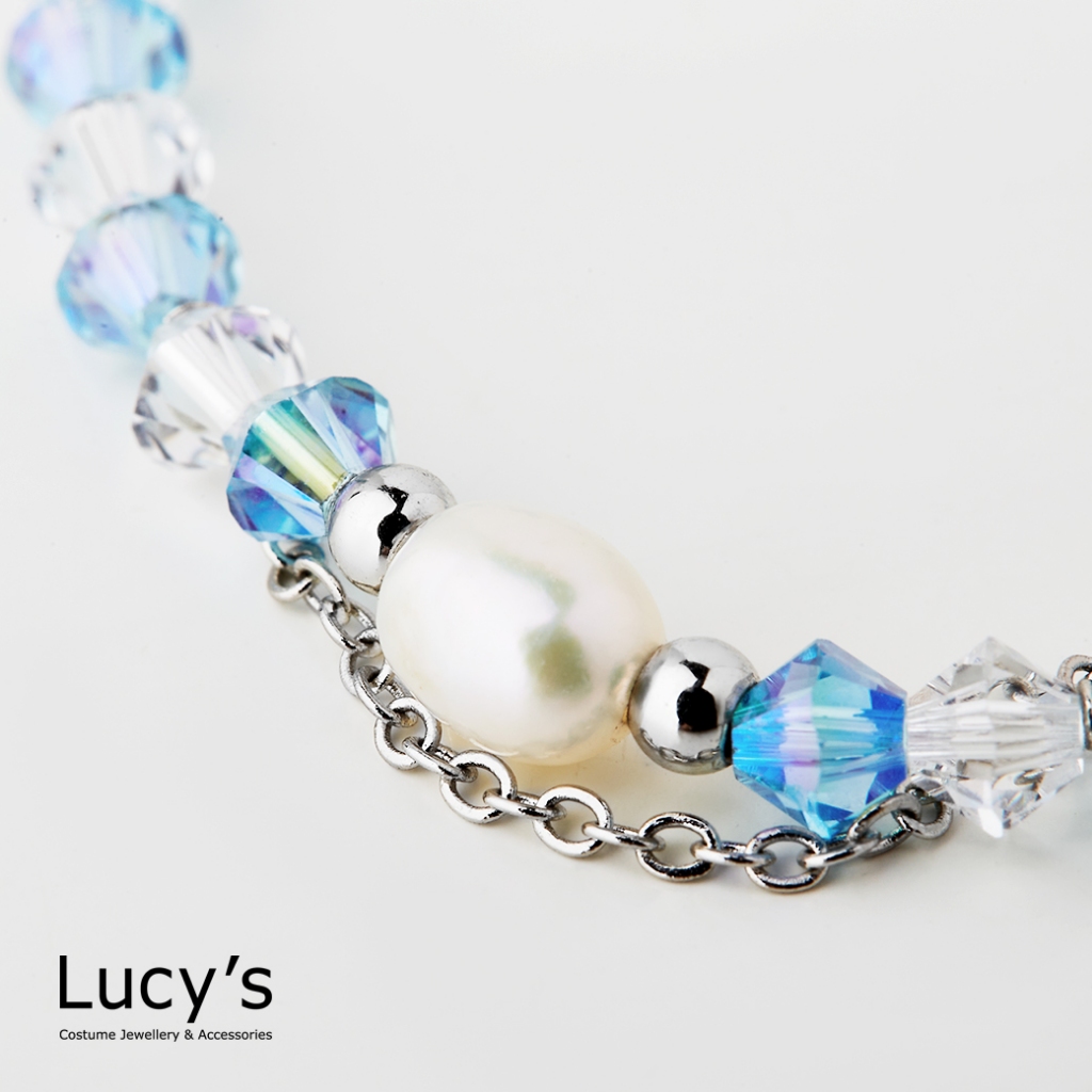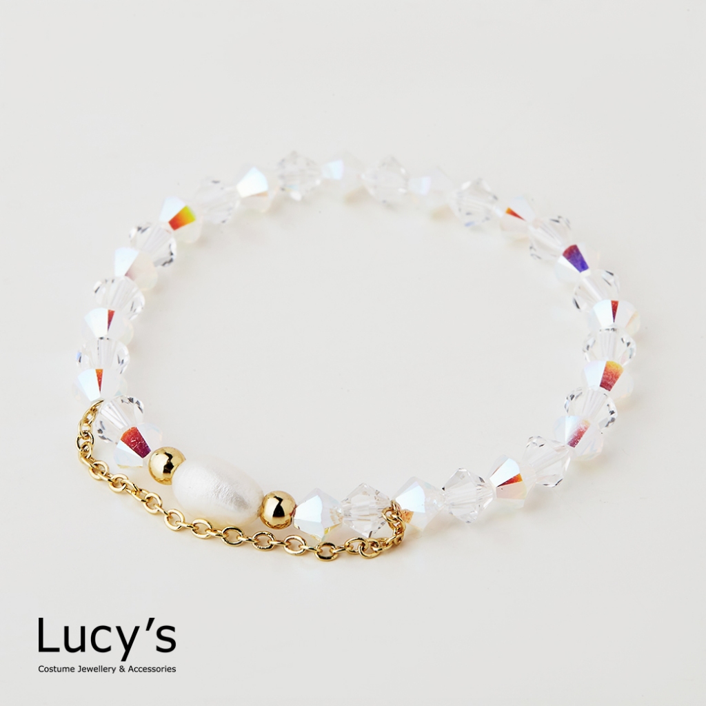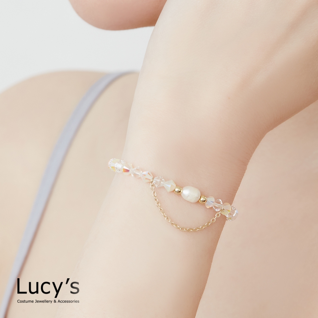 Lucy’s KIDS 兒童系列|珍珠水晶 兒童彈性手鍊 (三色)(126314/126315/126316)銀藍|金白|玫金粉Lucy’s 飾品