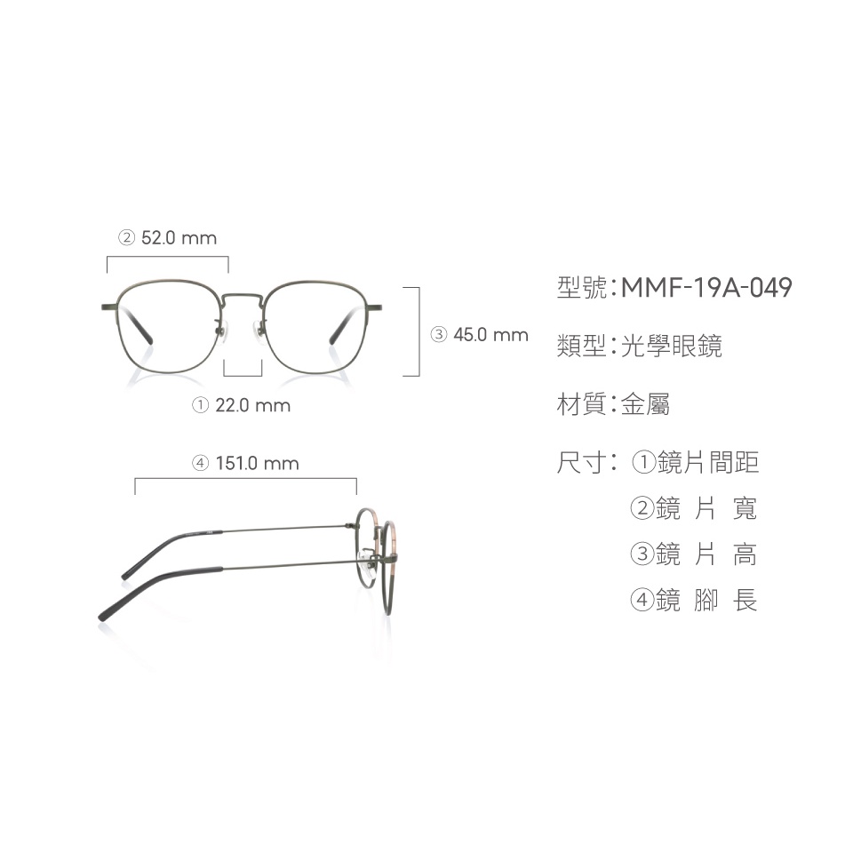 【JINS】時尚輕經典霧面金屬質感眼鏡(AMMF19A049)-方框-多色可選深卡其|鐵灰|金色|霧黑Frames & GlassesJINS 台灣官方旗艦店