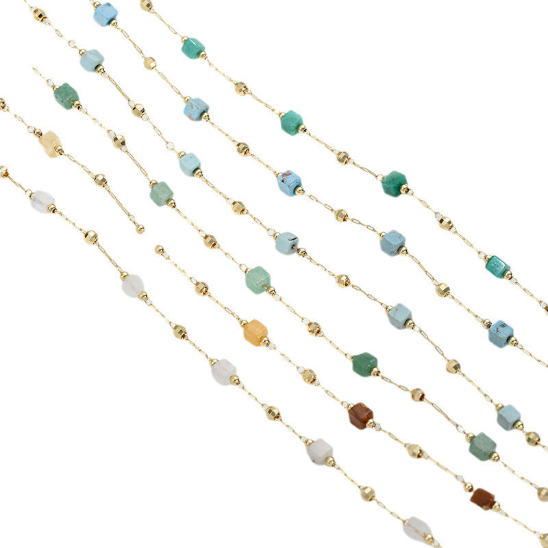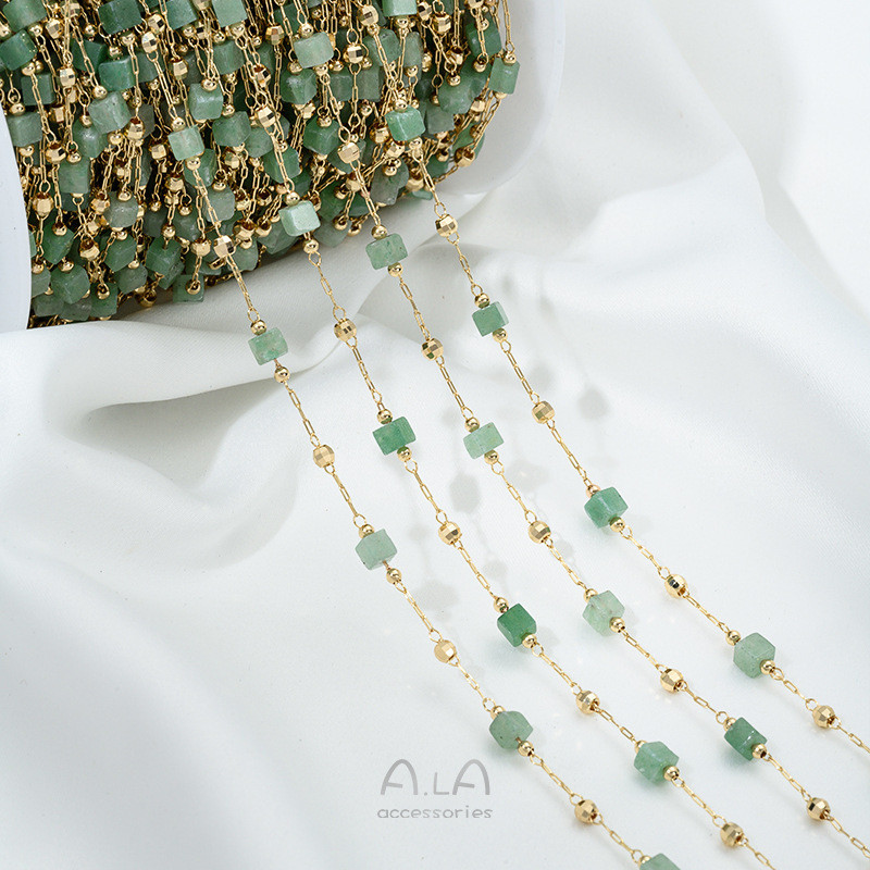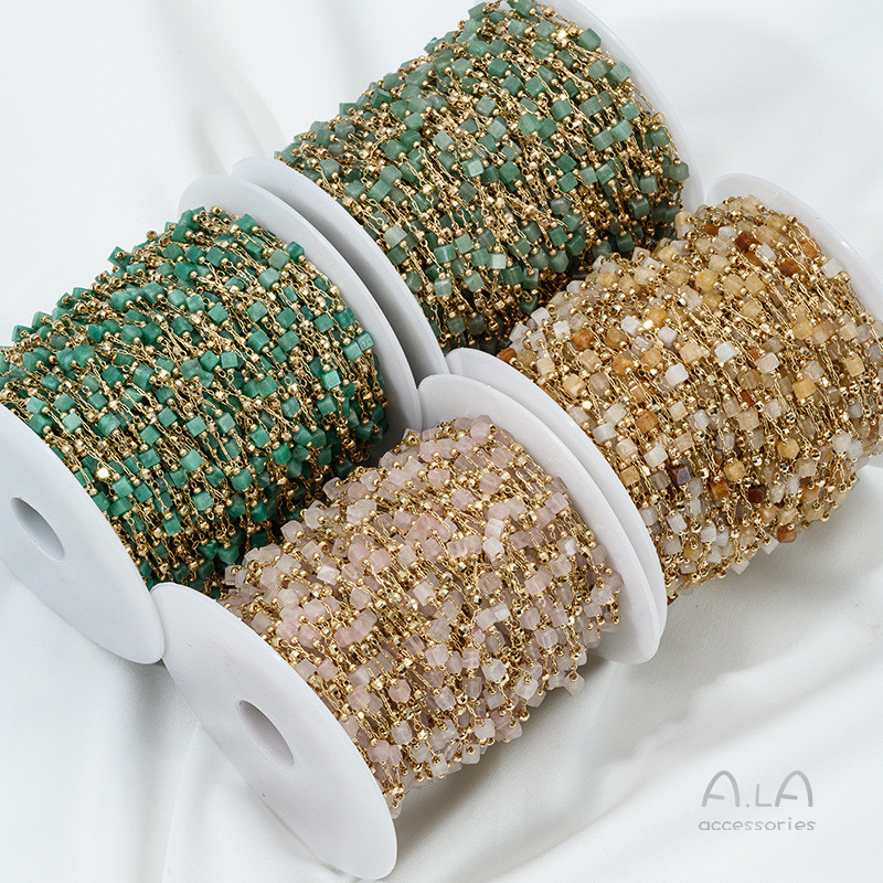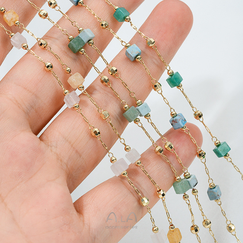 宏雲Hongyun-Ala新品-14K包金保色小方塊天然水晶草莓晶黃綠玉石綠松石隔珠鏈條diy散鏈綠草莓晶隔珠鏈 半米 50厘米|粉晶隔珠鏈 半米 50厘米|綠玉隔珠鏈 半米 50厘米|黃龍玉隔珠鏈 半米 50厘米|綠松石隔珠鏈 半米 50厘米|藍松石隔珠鏈 半米 50厘米HongYun飾品配件批發零售