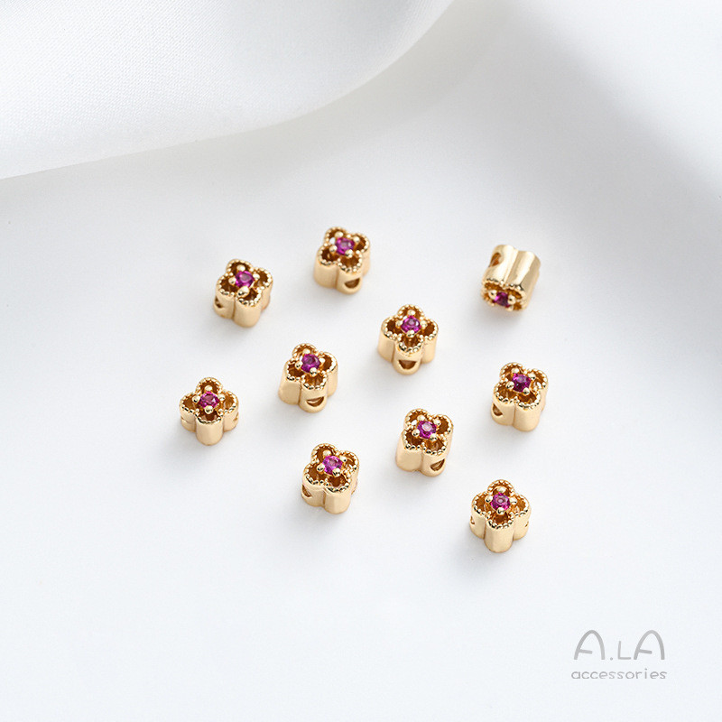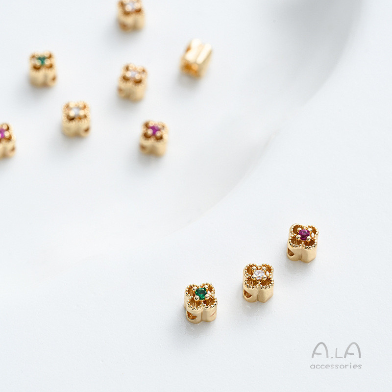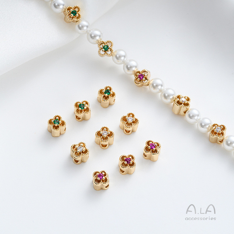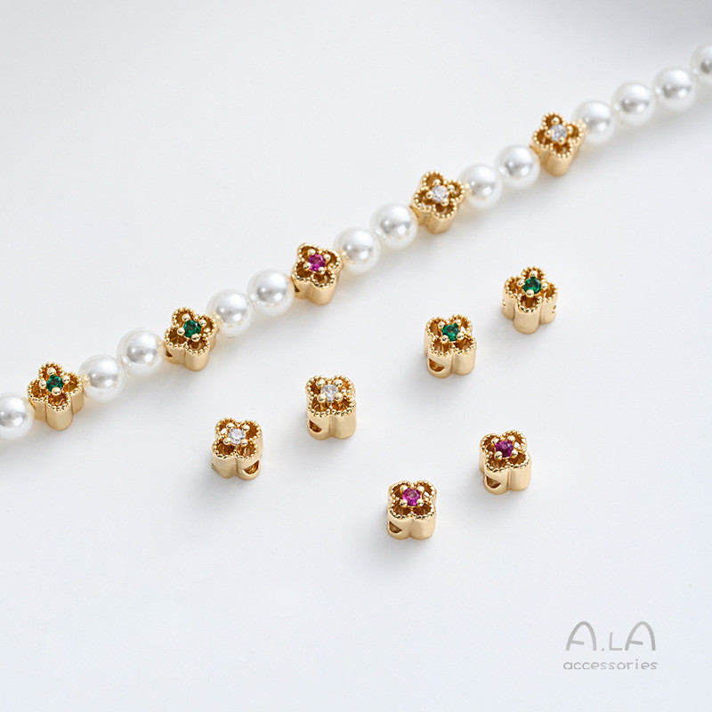 宏雲Hongyun-Ala新品-强保色14K包金鏤空花邊彩鋯四葉草隔珠diy手作首飾品手鏈串珠資料白鋯 花邊四葉草小隔珠 1個|綠鋯 花邊四葉草小隔珠 1個|紅鋯 花邊四葉草小隔珠 1個HongYun飾品配件批發零售