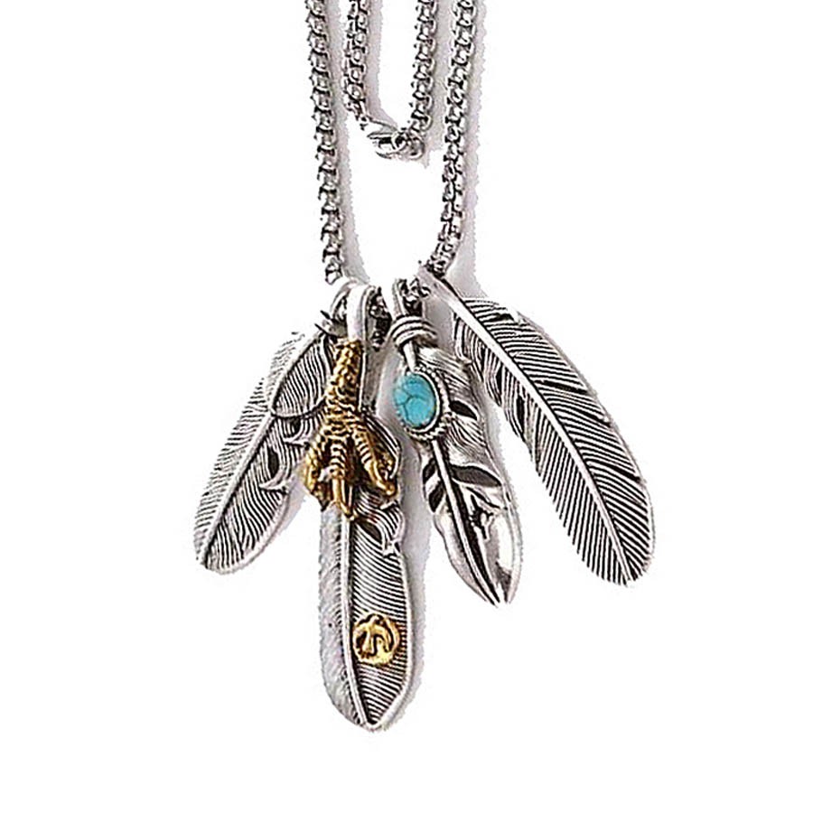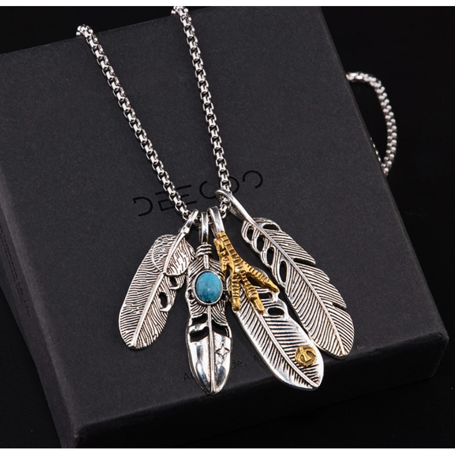 【K-2】四合一 日式羽毛 羽毛項鍊 羽毛 項鍊 印地安 飾品 穿搭 搭配 潮流 自由搭配 日式 男女不拘【KM20】
