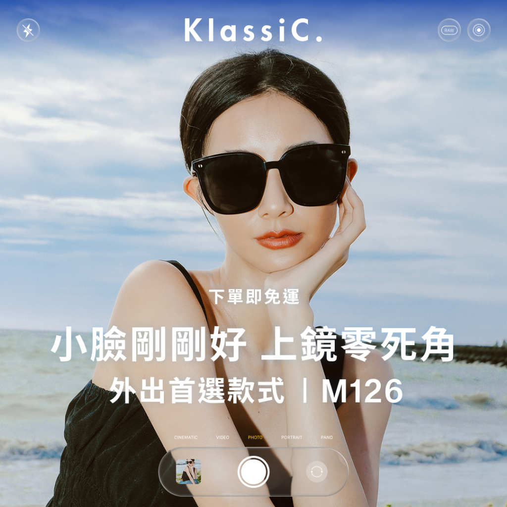 KlassiC. M126 熱銷破十萬支的經典小臉王者板料梯形框太陽眼鏡 明星同款修飾臉型必備大框平面墨鏡亮黑黑片|消光黑SunglassesKlassiC.