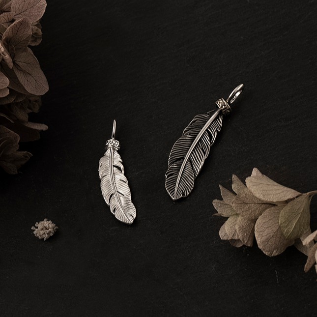 【JK銀飾】暮暮細羽/925純銀-項鍊硫化M|亮銀W|一對JK銀飾.官方賣場