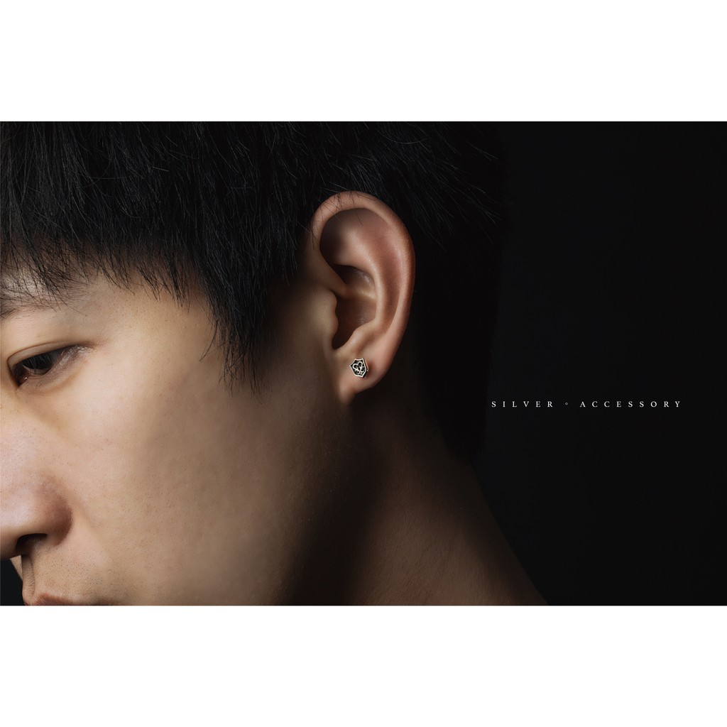 【JK銀飾】聖盾/925純銀【耳釘、man】銀光白(單只)|硫化黑(單只)|銀光白(一對)|硫化黑(一對)JK銀飾.官方賣場