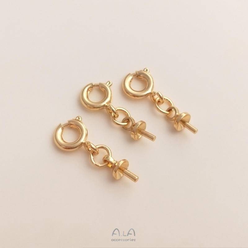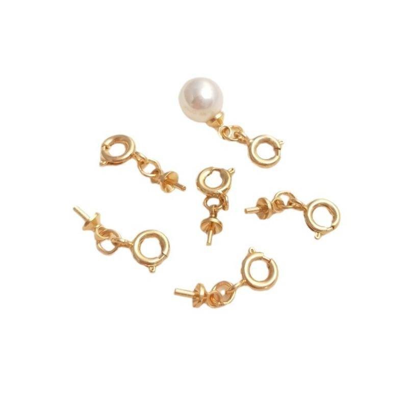 宏雲Hongyun-Ala新品-保色14k包金萬能扣彈簧扣水晶珍珠半孔珠托吊墜扣手工diy飾品配件14k包金半孔珠托萬能扣 1套HongYun飾品配件批發零售