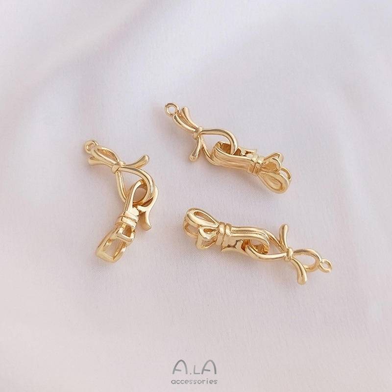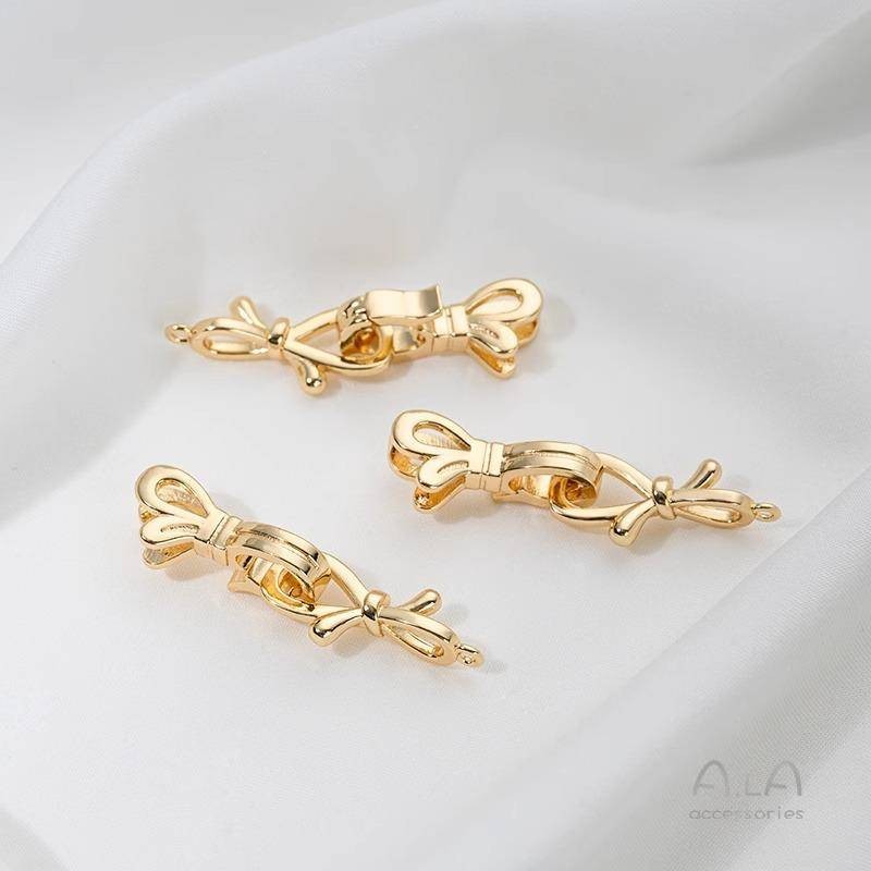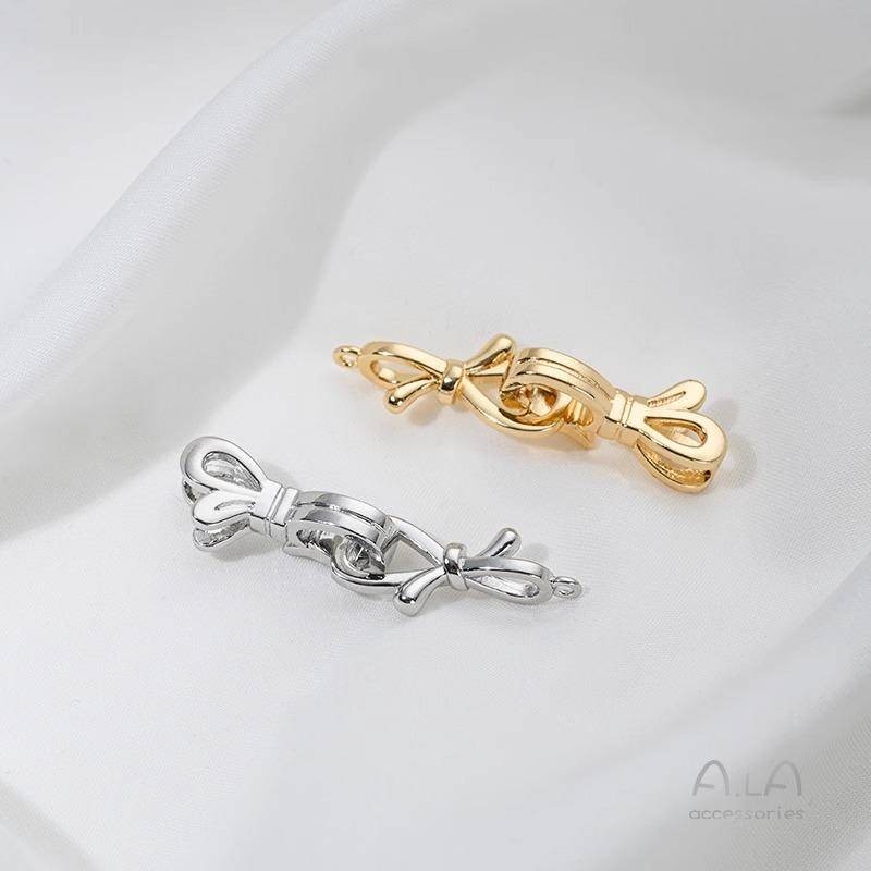宏雲Hongyun-Ala新品-14k包金保色珍珠項鍊蝴蝶扣連接扣卡扣手工diy毛衣鏈收尾扣頭配件14k 長蝴蝶結珍珠扣 1套|白k 長蝴蝶結珍珠扣 1套HongYun飾品配件批發零售