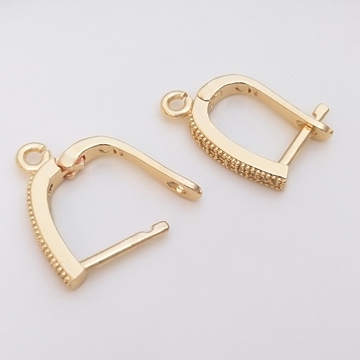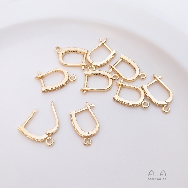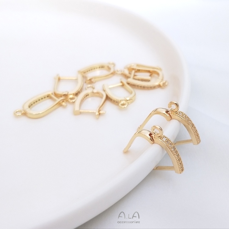 宏雲Hongyun-Ala–保色耳環配件14K鍍金鑲鋯石帶吊環U形耳扣手工diy耳飾品手作材料鑲鋯石U形耳扣1對 2只HongYun飾品配件批發零售