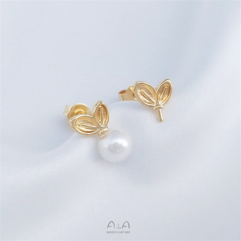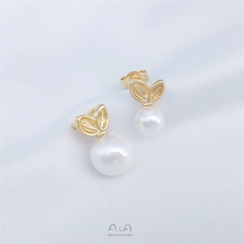 宏雲Hongyun-Ala新品-14K包金兔耳朵葉子珠托項鍊吊墜樹葉空托銀針耳釘diy手工珍珠配件樹葉項鍊吊珠托 1個|樹葉珠托銀針耳釘 1對 2隻HongYun飾品配件批發零售