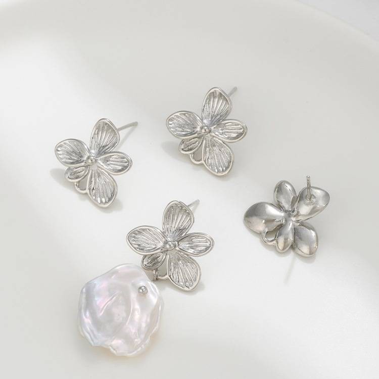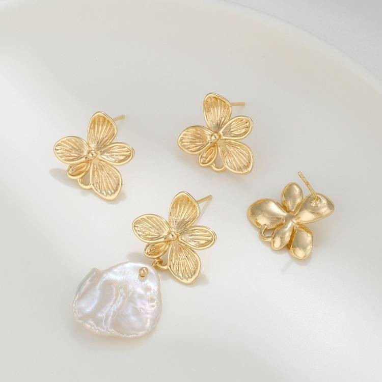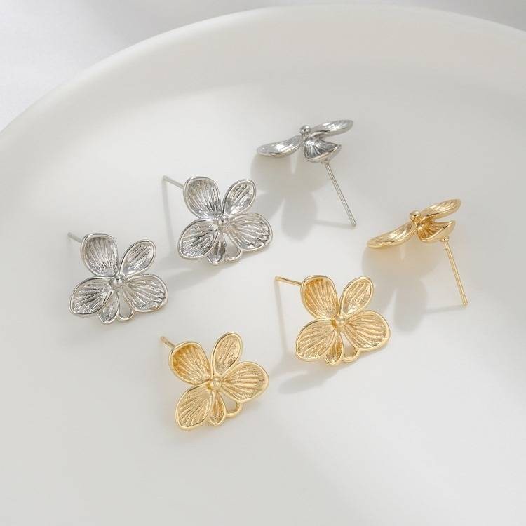 宏雲Hongyun-Ala新品-925銀針14K包金保色蝴蝶花帶吊環花瓣花朵耳釘diy手工耳飾品配件14k包金 花朵帶吊耳釘1對2隻|白金色 花朵帶吊耳釘1對2隻HongYun飾品配件批發零售