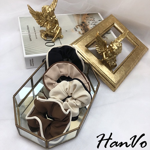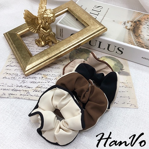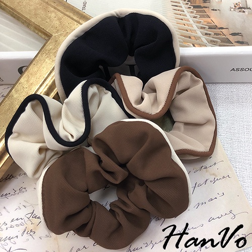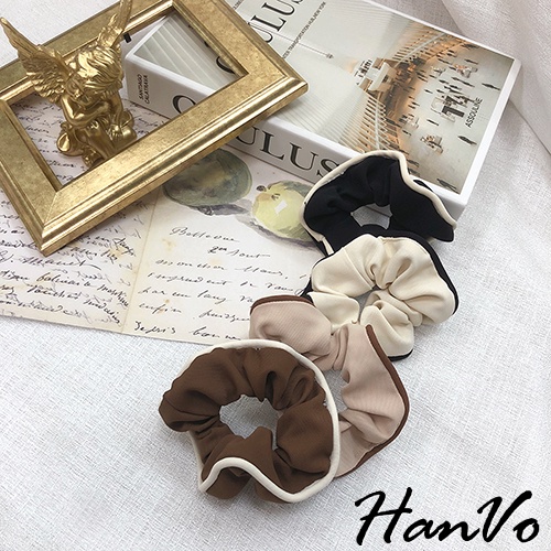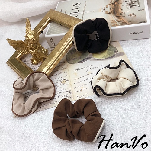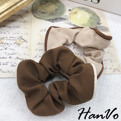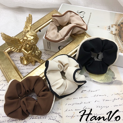 【HanVo】奶茶色滾邊大腸髮圈 韓系甜美百搭髮圈髮束 韓系髮圈 髮圈 女生髮圈 女生配件 C03-8059咖啡|黑色|米杏|奶茶Hair Ties, Ribbons & ScrunchiesHanVo Wear Collection