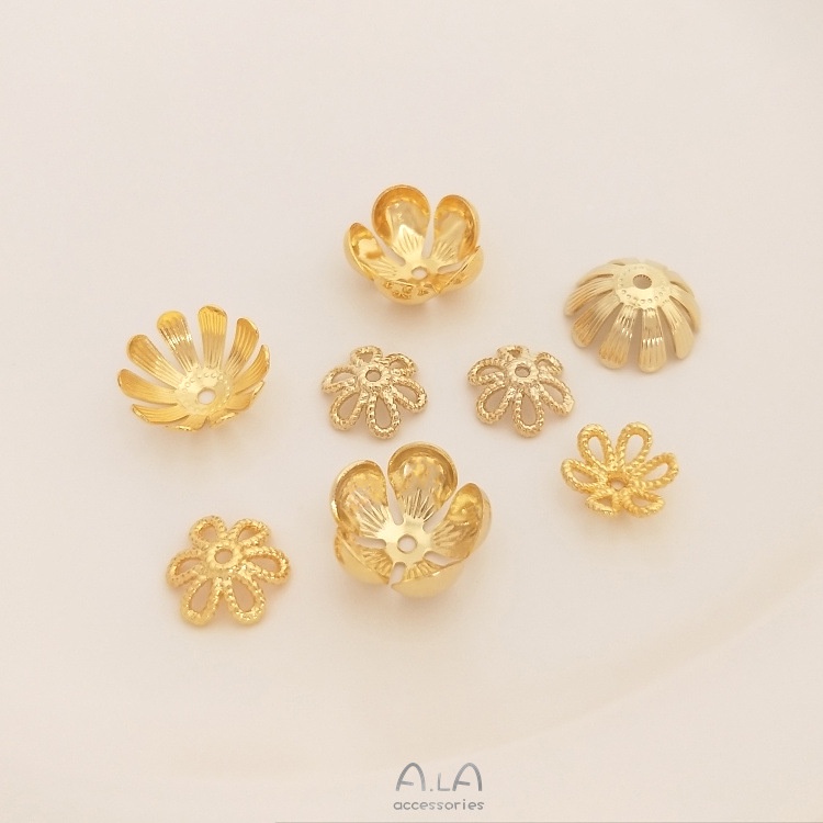 宏雲Hongyun-Ala-保色14K淺金色18K真金色色花托配件手工diy小雛菊珠帽珠托飾品材料13mm五瓣花碗托 14K淺金1個|13mm五瓣花碗托 18K金色1個|10mm鏤空六瓣花托 14K淺金1個|10mm鏤空六瓣花托 18K金色1個|13mm小雛菊花托 14K淺金1個|13mm小雛菊花托 18K金色1個HongYun飾品配件批發零售