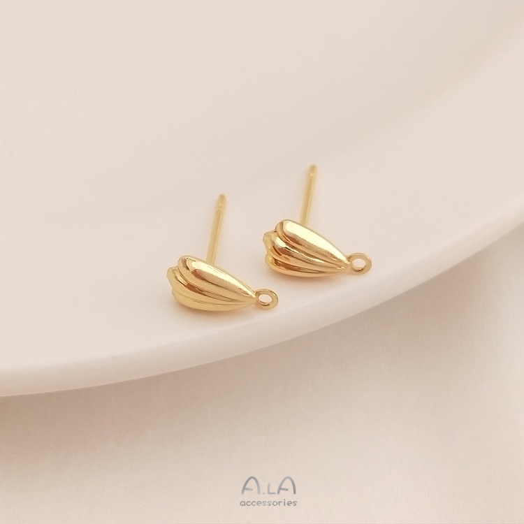宏雲Hongyun-Ala-14K鍍金保色心形水滴貝殼形帶吊耳釘diy手工耳環飾品耳針配件
