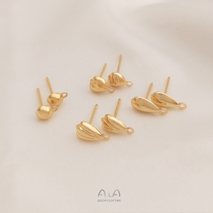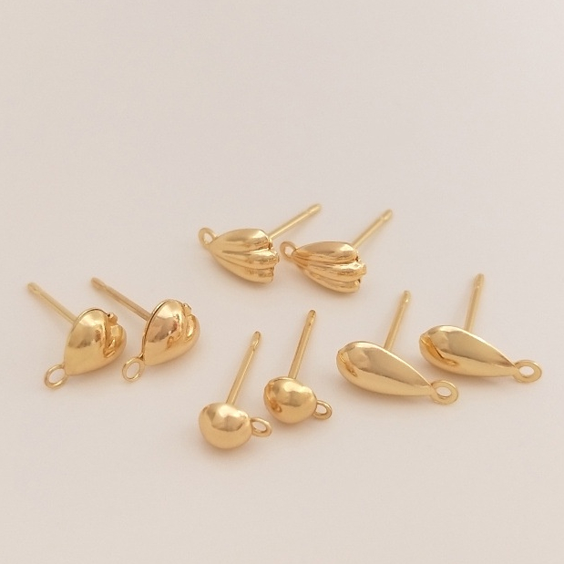 宏雲Hongyun-Ala-14K鍍金保色心形水滴貝殼形帶吊耳釘diy手工耳環飾品耳針配件貝殼帶吊耳釘 1對 2只|半圓帶吊耳釘 1對 2只|心形帶吊耳釘 1對 2只|水滴帶吊耳釘 1對 2只HongYun飾品配件批發零售