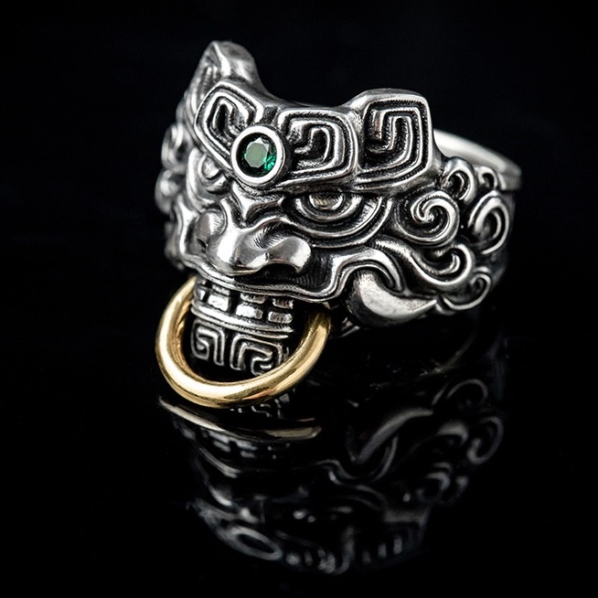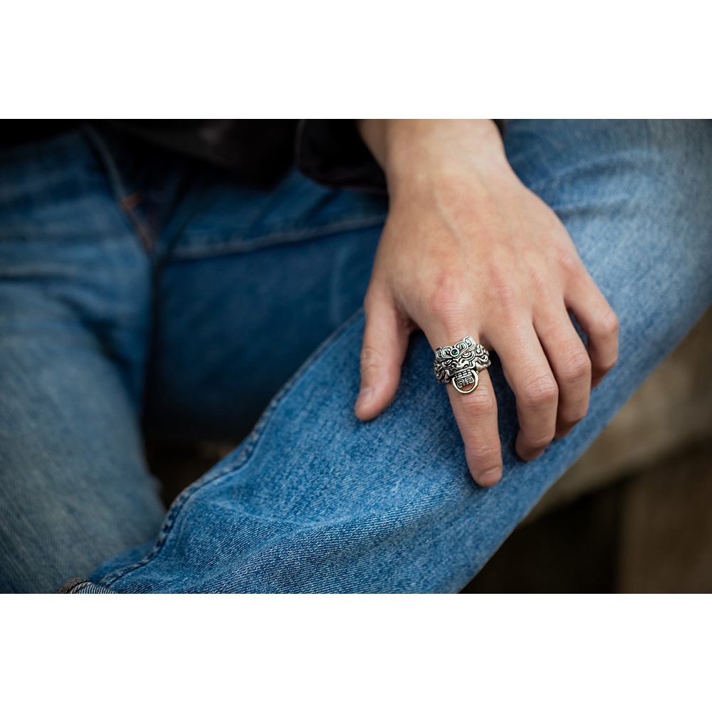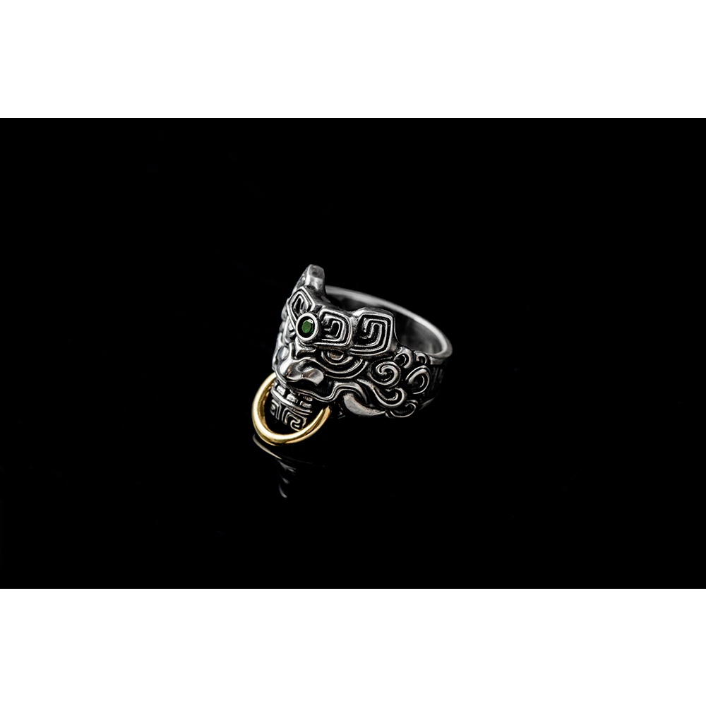 【JK銀飾】饕餮.銜金 /925純銀 戒指