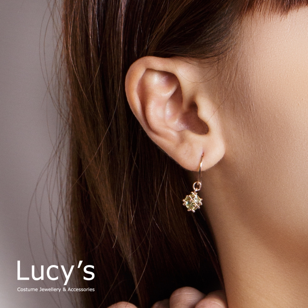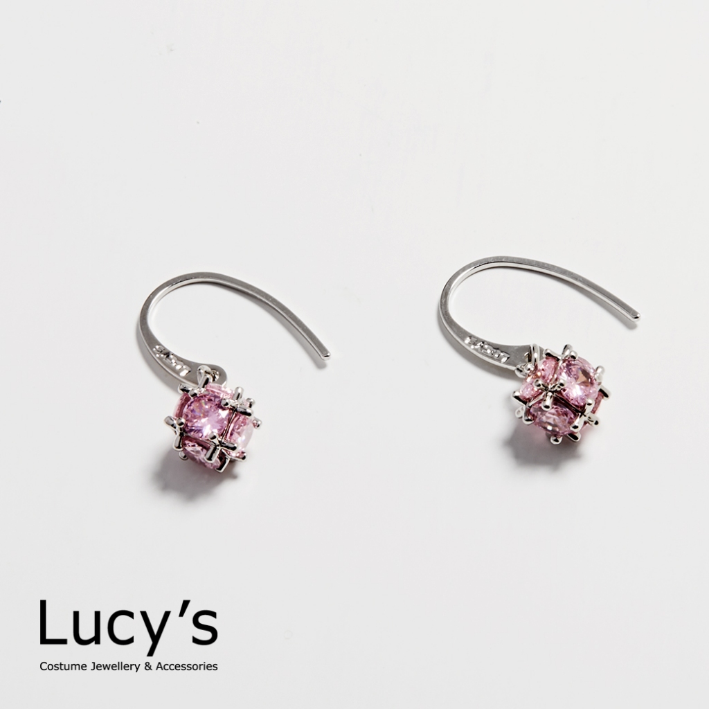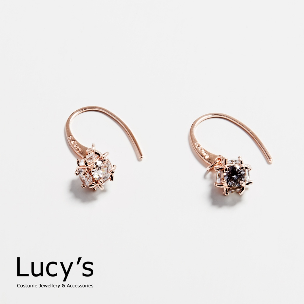 Lucy’s 垂墜小方鑽 耳勾耳環 (五色) (58208/58210/58211/58212/58玫瑰透|銀透|銀紫|銀粉|玫金黃Lucy’s 飾品