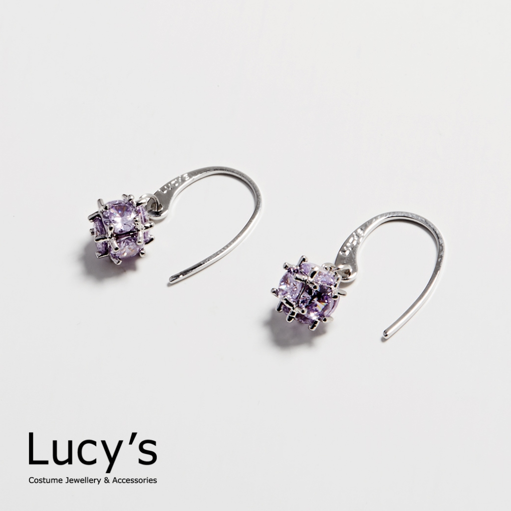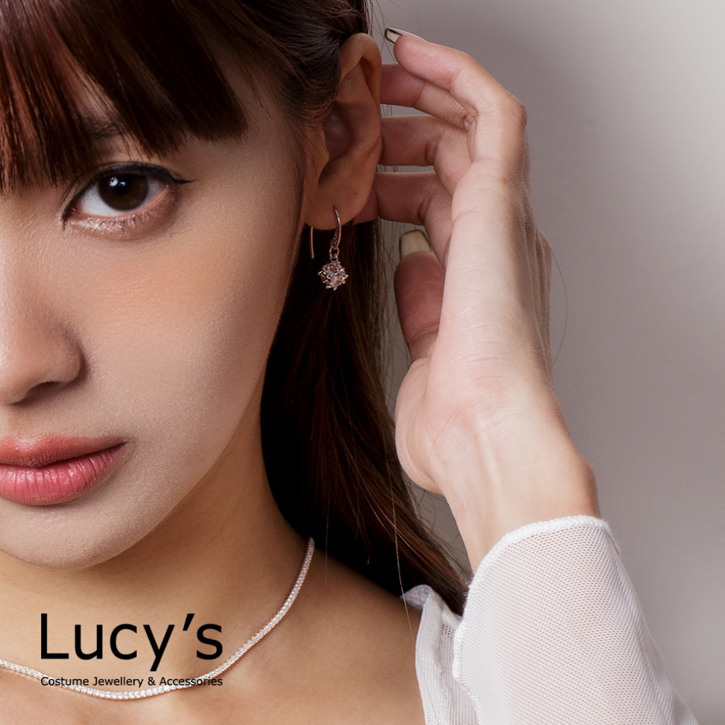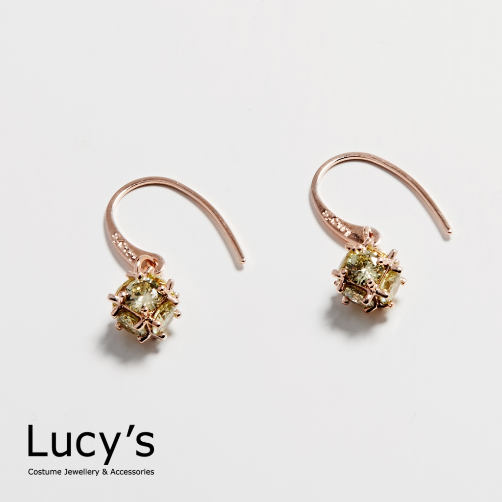 Lucy’s 垂墜小方鑽 耳勾耳環 (五色) (58208/58210/58211/58212/58玫瑰透|銀透|銀紫|銀粉|玫金黃Lucy’s 飾品