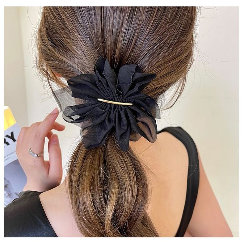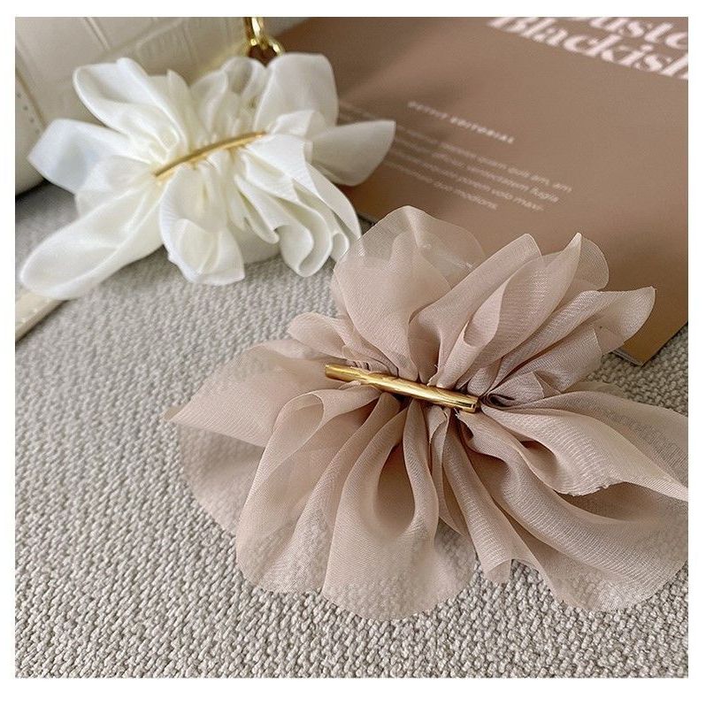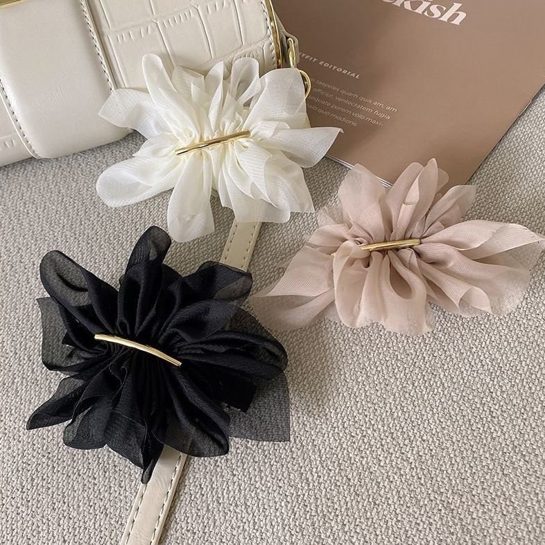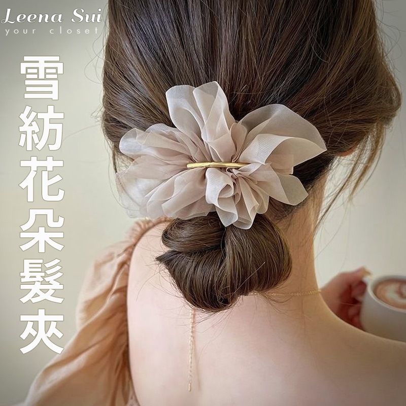 氣質雪紡花朵髮夾女夏季後腦勺馬尾夾子頭飾高級感簡約彈簧夾 080838奶茶色|黑色Hair Clips & Hair PinsLeenaSui ~台灣賣家 隔日到貨