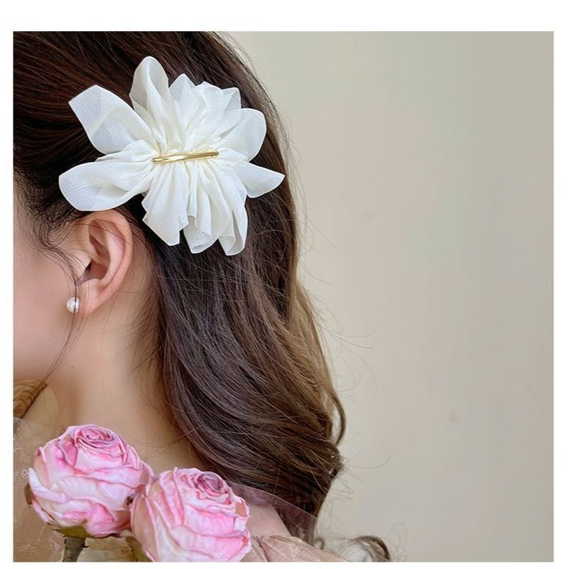 氣質雪紡花朵髮夾女夏季後腦勺馬尾夾子頭飾高級感簡約彈簧夾 080838