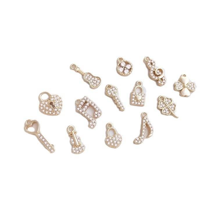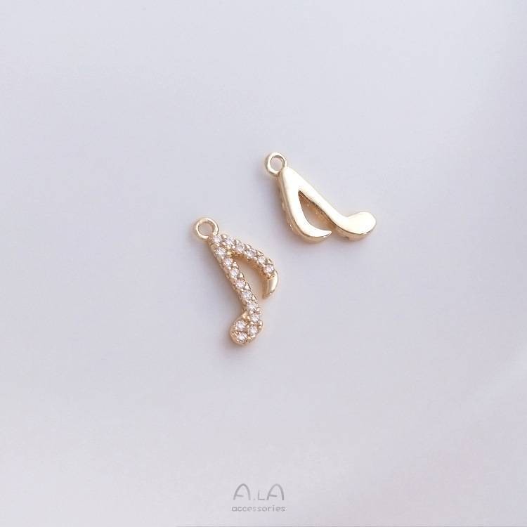 宏雲Hongyun-Ala新品-保色14k包金微鑲鋯石四葉草音符小提琴鑰匙鎖形吊墜diy飾品小吊飾