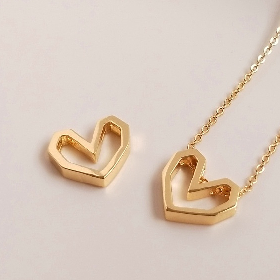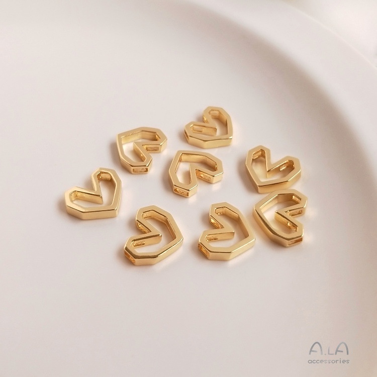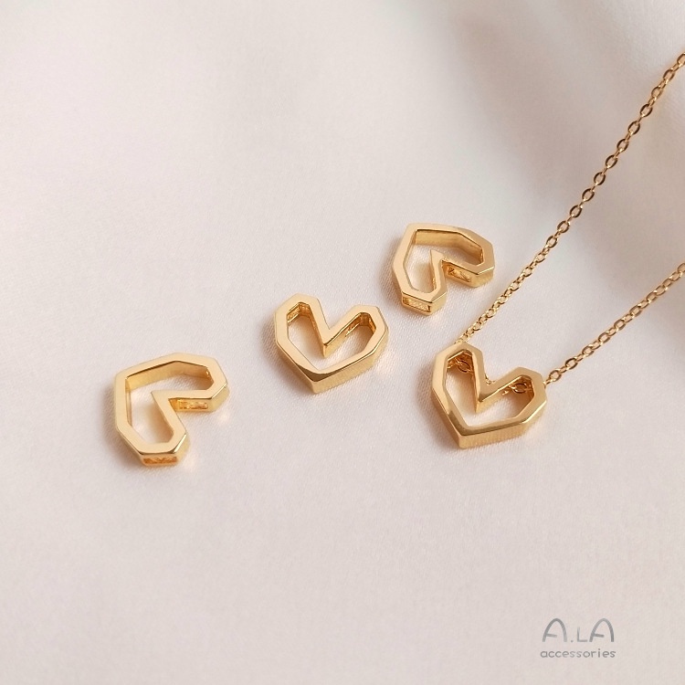 宏雲Hongyun-Ala-保色14K鍍金幾何框愛心形桃心吊墜diy手工項鏈鎖骨鏈掛件耳墜配飾11x9mm幾何框心形吊墜 1個HongYun飾品配件批發零售