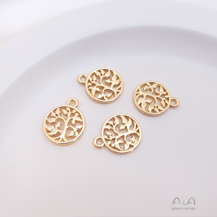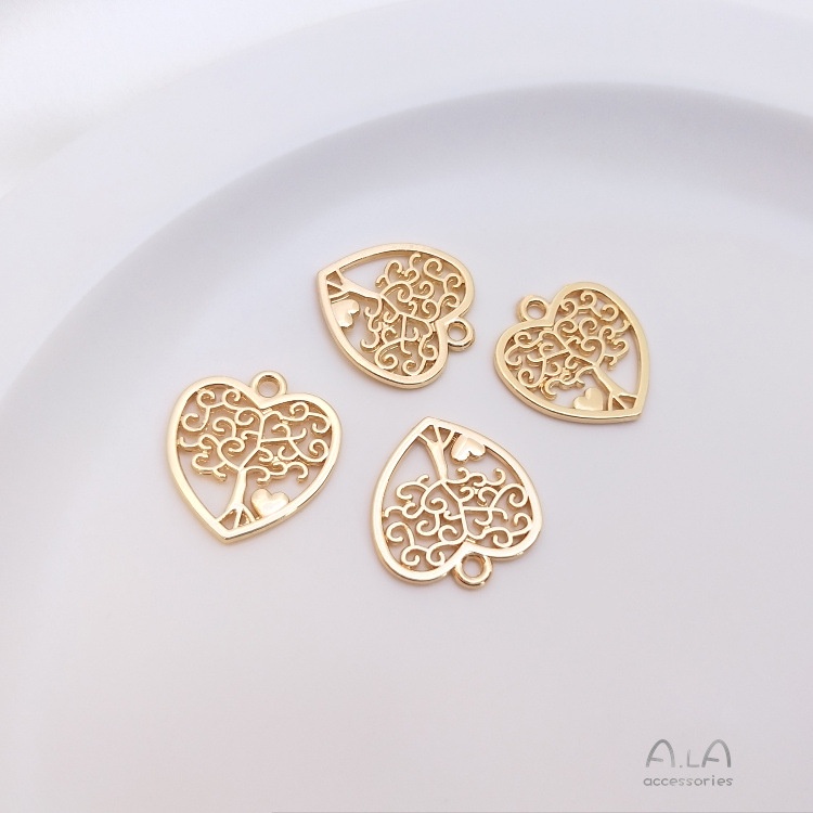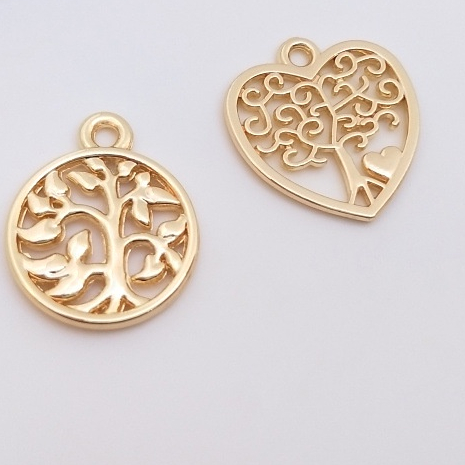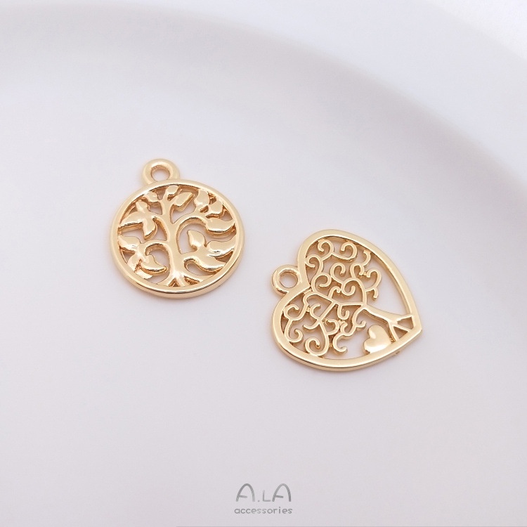 宏雲Hongyun-Ala-14K鍍金保色配件生命之樹圓牌吊墜幸運樹愛心形首飾品掛件diy吊飾17mm心形生命之樹吊墜 1個|15mm圓牌生命之樹吊墜 1個HongYun飾品配件批發零售