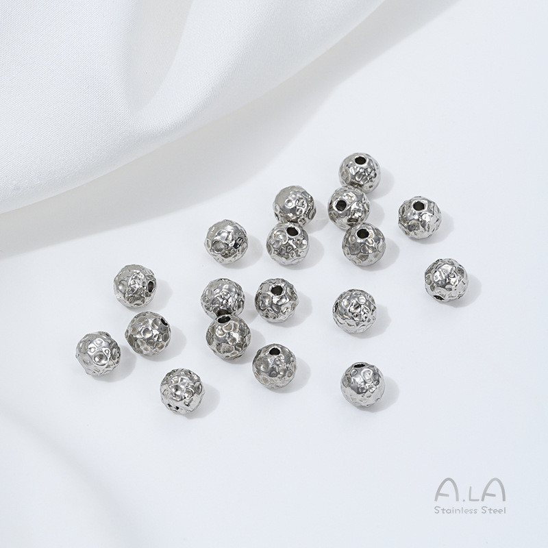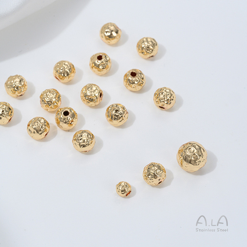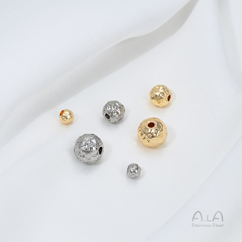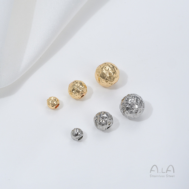 宏雲Hongyun-Ala新品-不褪色鈦鋼錘紋褶皺圓珠隕石珠不銹鋼隔珠diy手鏈項鍊串飾品配件4mm 鋼本色(10個)|6mm 鋼本色(10個)|8mm 鋼本色(10個)|4mm 鋼包金 ( 10 個 )|6mm 鋼包金 ( 10 個 )|8mm 鋼包金 ( 10 個 )HongYun飾品配件批發零售