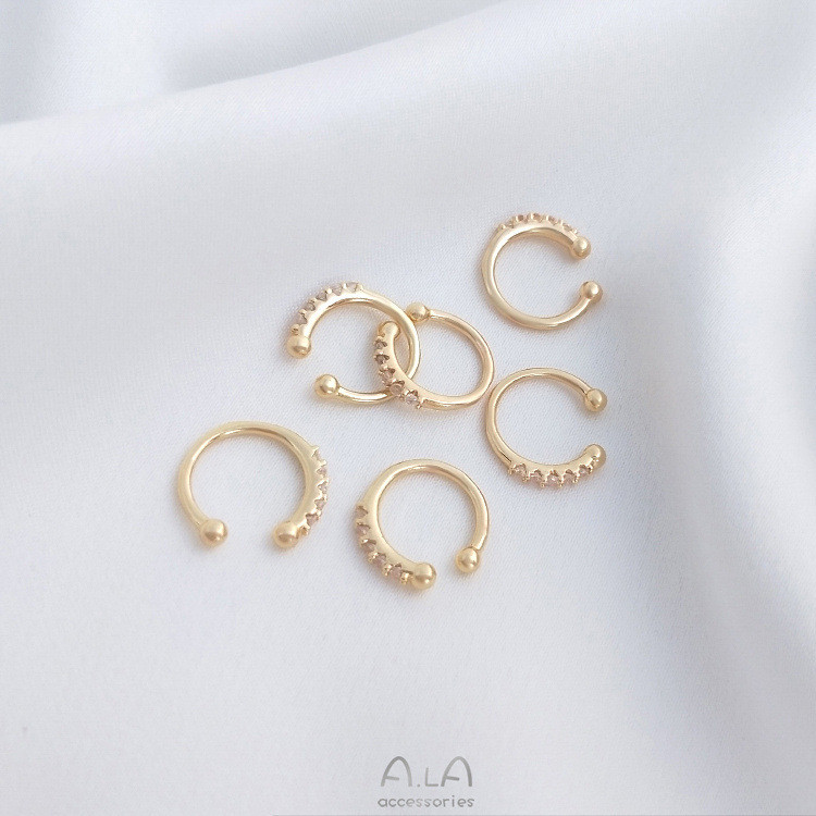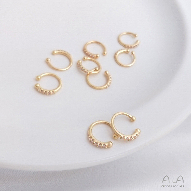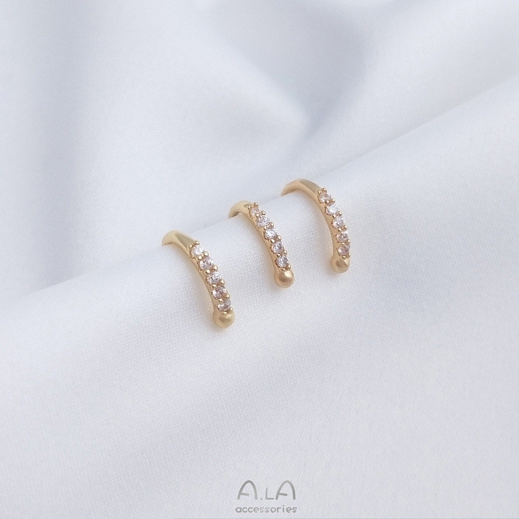 宏雲Hongyun-Ala新品-14K包金保色鑲嵌鋯石C形耳夾無耳洞耳環小耳飾耳骨夾一對價格鑲鋯C形耳骨夾1對2只HongYun飾品配件批發零售