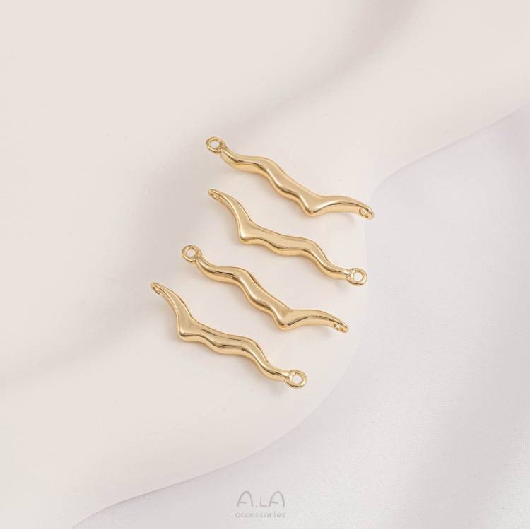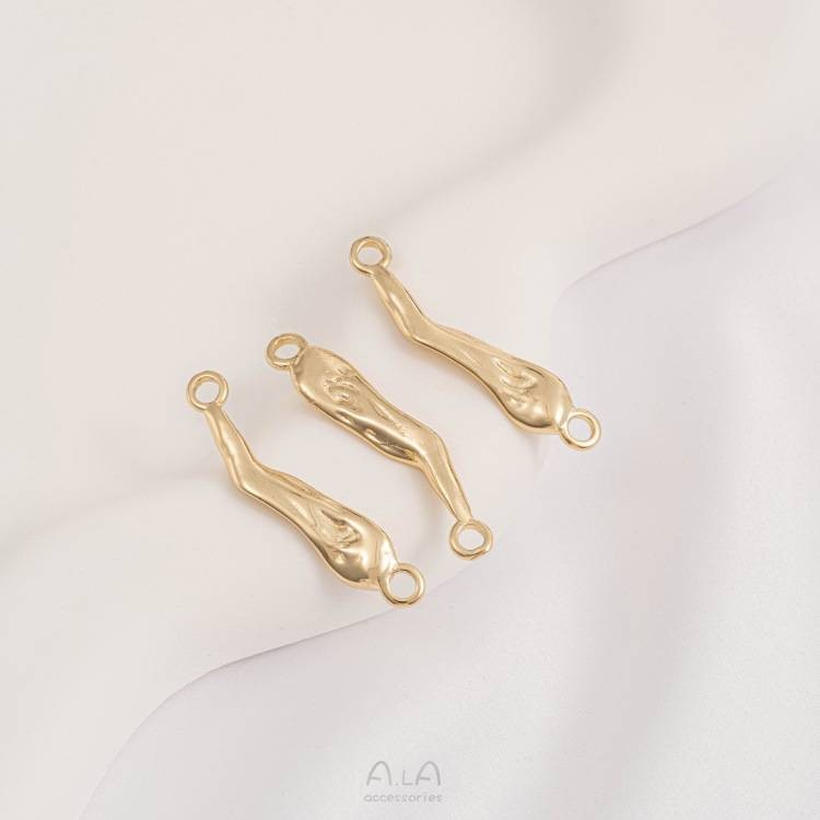 宏雲Hongyun-Ala新品-14K包金保色熔岩不規則雙吊連接件波浪形雙掛耳飾配件diy飾品資料A款長度16mm 1個|B款長度24.3mm 1個|C款長度36.8mm 1個|D款長度34.5mm 1個HongYun飾品配件批發零售