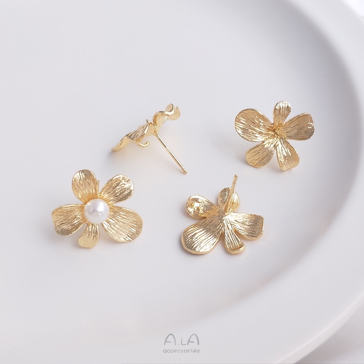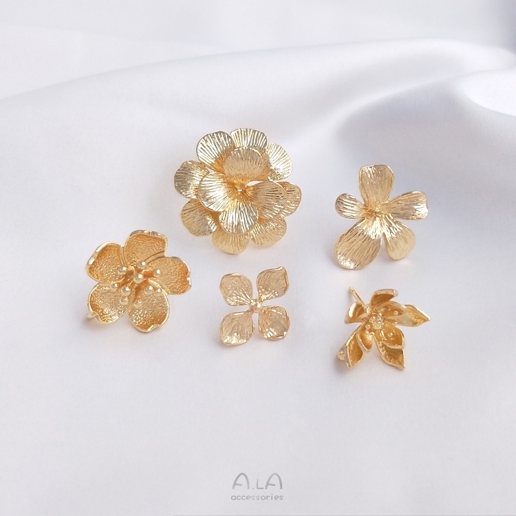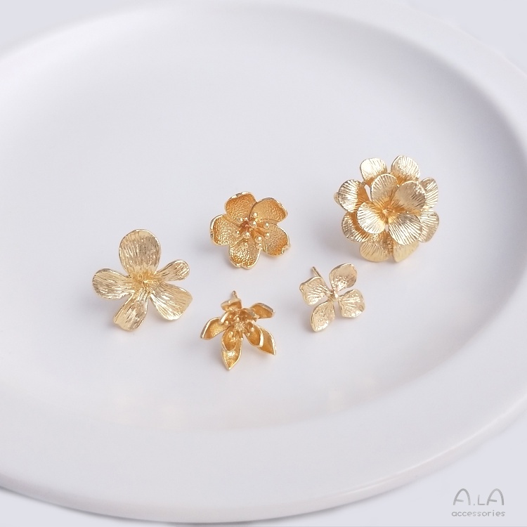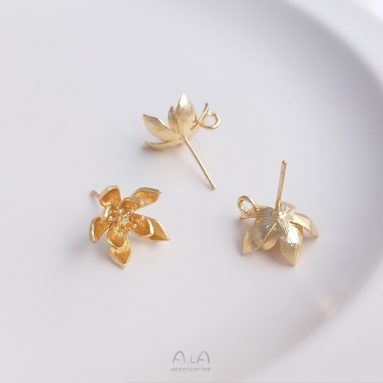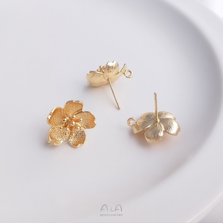 宏雲Hongyun-Ala-0801–14K包金古風花朵帶吊環花形櫻花耳釘珠托耳針925銀手工耳飾品材料