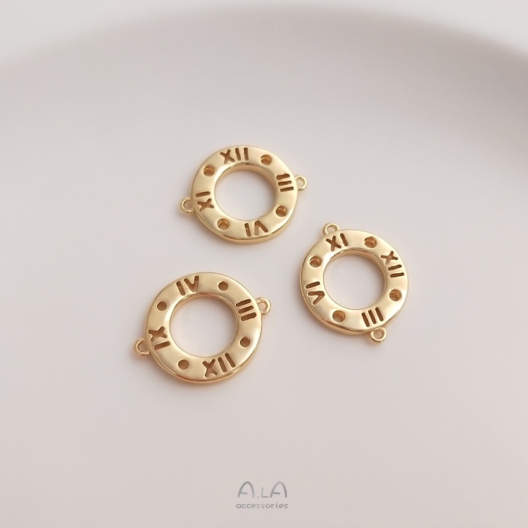 宏雲Hongyun-Ala–14K鍍金保色羅馬數字時鐘圓環吊墜diy雙吊配件首飾品配飾手工材料
